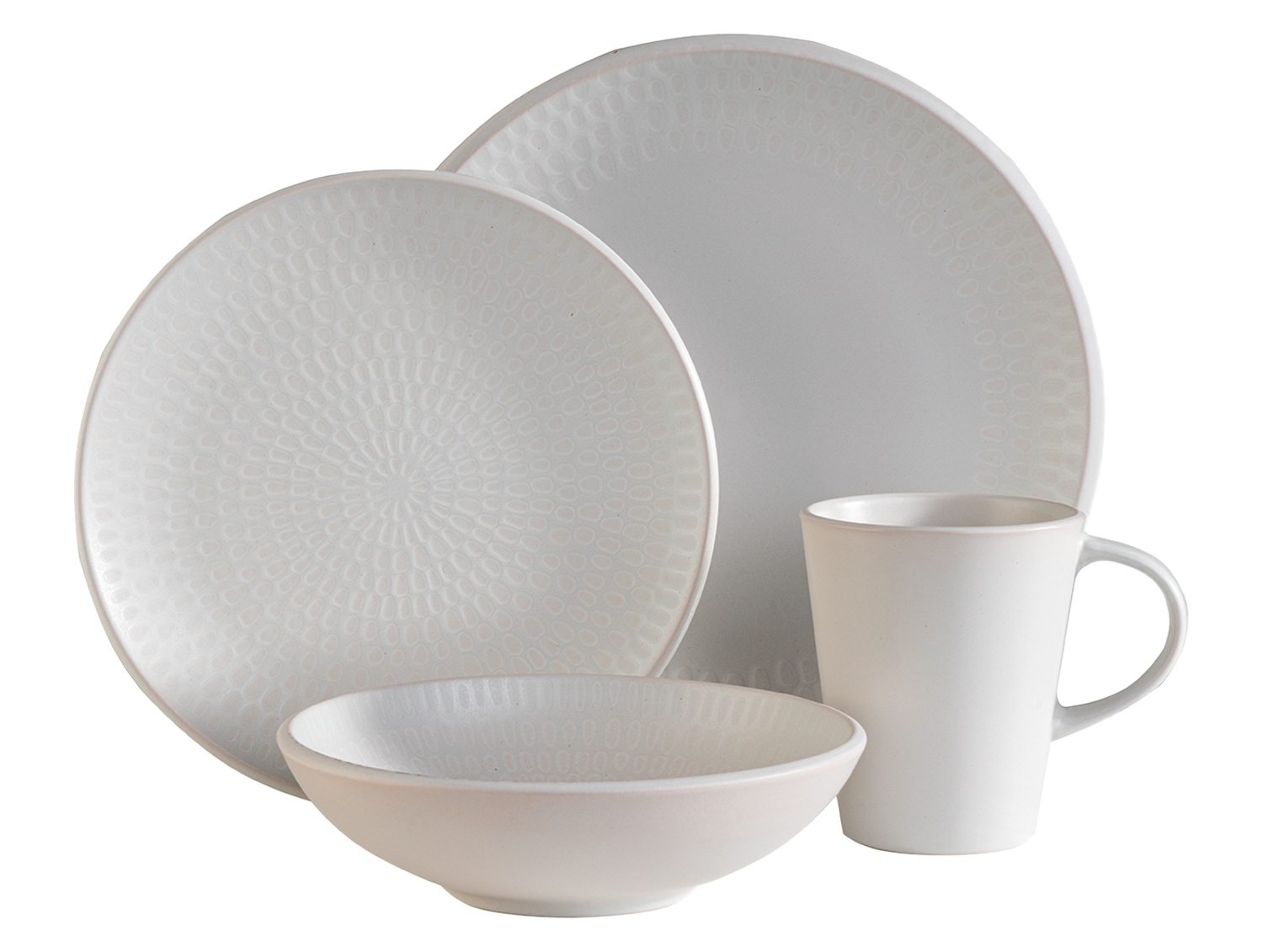 Weiß matt - Steingut - mit kreisförmiger Reliefprägung