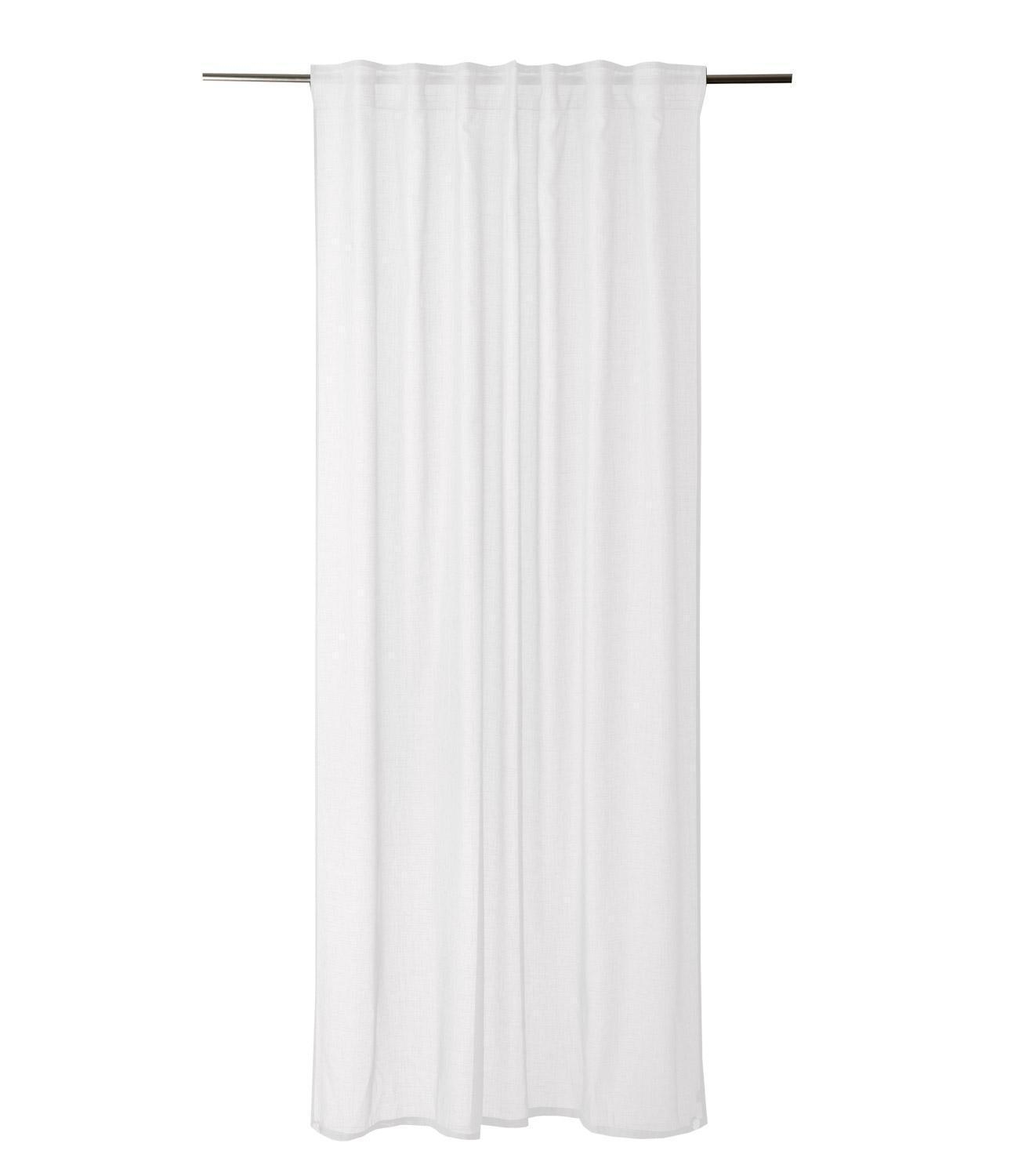 Der weiße Schlaufenschal FABRONI von Home4You setzt sanfte Akzente in jedem Raum. Mit seiner Größe von 140 x 245 cm fällt er locker und sorgt dank halbtransparentem Stoff für helle, freundliche Atmosphäre. Der unifarbene Polyesterstoff passt zu vielen Wohnstilen, während verdeckte Schlaufen für einen ruhigen Look an der Gardinenstange sorgen. Pflegeleicht: waschbar bis 60 °C und bügelgeeignet. Ideal für moderne Fensterdekoration.