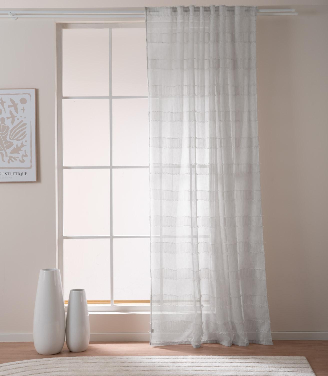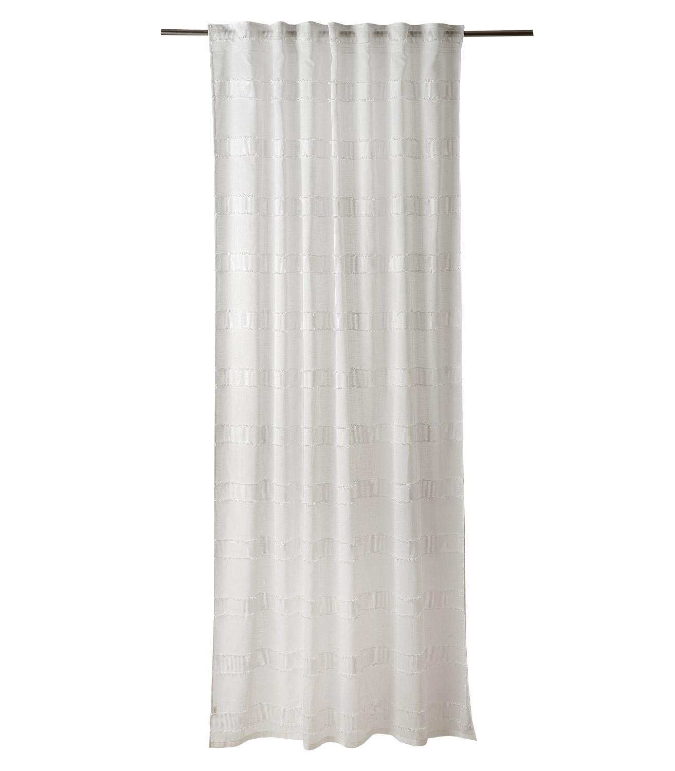 Der Schlaufenschal von Home4You in Weiß setzt sanfte Akzente in jedem Raum. Mit seiner Größe von 140 x 245 cm fällt er locker und sorgt dank halbtransparentem Stoff für helle, freundliche Atmosphäre. Der Polyesterstoff mit Querbalken passt zu vielen Wohnstilen, während verdeckte Schlaufen für einen ruhigen Look an der Gardinenstange sorgen. Pflegeleicht: waschbar bis 60 °C und bügelgeeignet. Ideal für moderne Fensterdekoration.