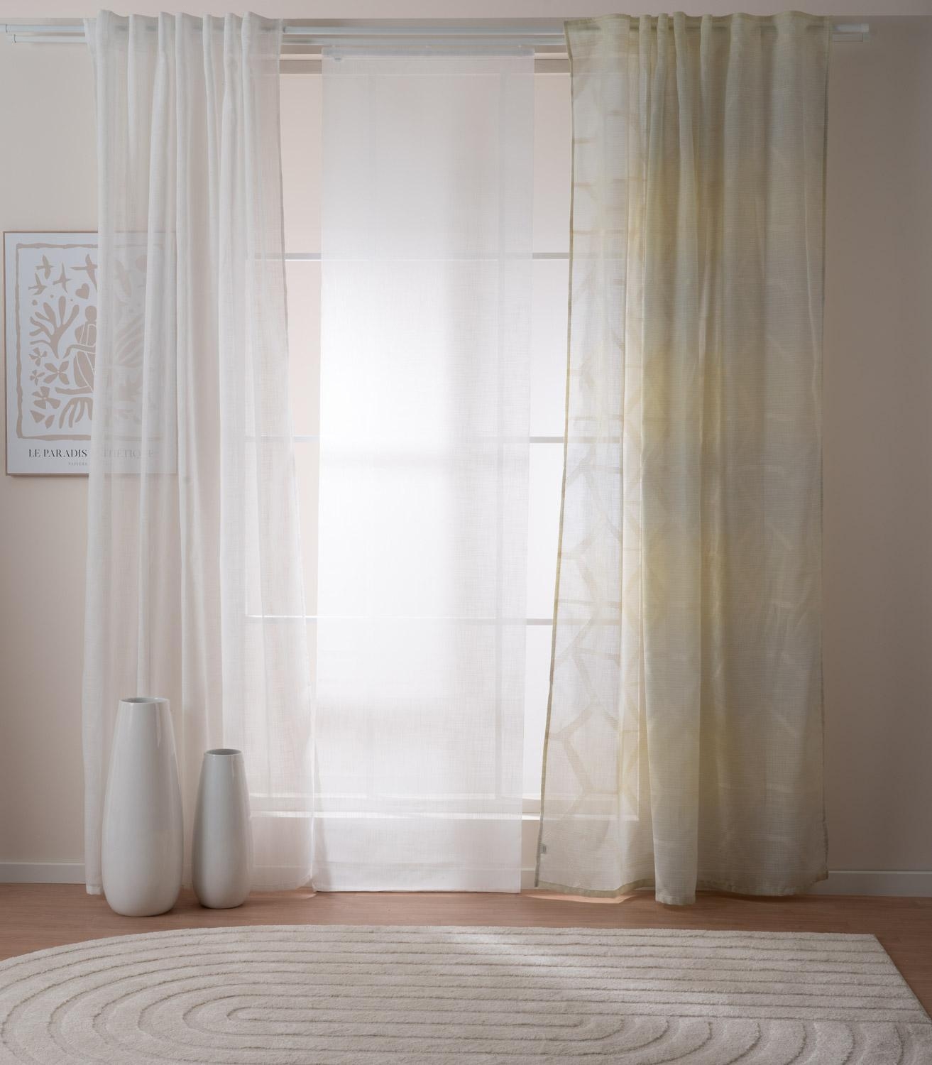 Der grüne Schlaufenschal von Home4You bringt frische Farbe ins Zuhause. Mit einer Größe von 140 x 245 cm fällt er elegant und lässt dank halbtransparenter Qualität viel Tageslicht hinein. Das grafische Muster in Leinenstruktur sorgt für moderne Akzente, während verdeckte Schlaufen einen ruhigen, harmonischen Auftritt an der Gardinenstange bieten. Der Polyesterstoff ist pflegeleicht, bei 60 °C waschbar und bügelgeeignet – ideal für helle Wohnräume.