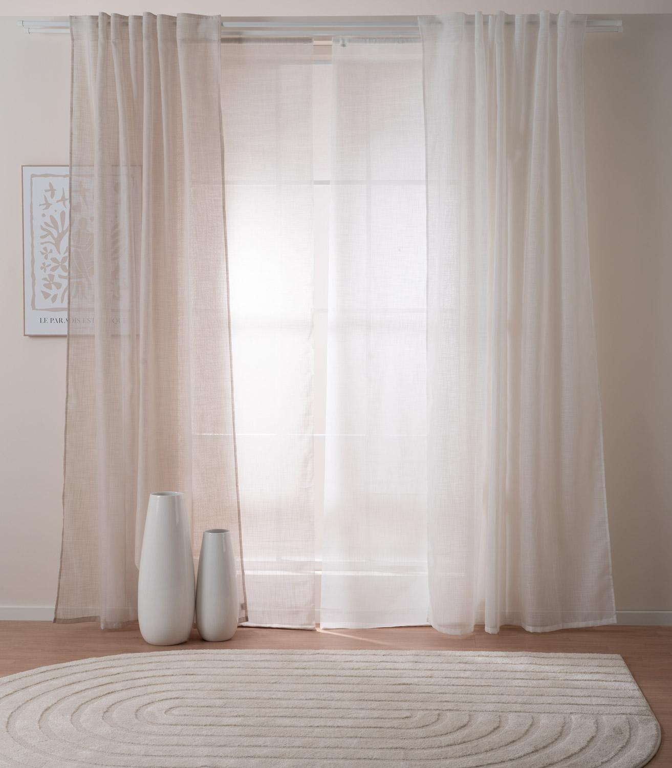 Der Schlaufenschal von Home4You in Creme setzt sanfte Akzente in jedem Raum. Mit seiner Größe von 140 x 245 cm fällt er locker und sorgt dank halbtransparentem Stoff für helle, freundliche Atmosphäre. Der unifarbene Polyesterstoff passt zu vielen Wohnstilen, während verdeckte Schlaufen für einen ruhigen Look an der Gardinenstange sorgen. Pflegeleicht: waschbar bis 60 °C und bügelgeeignet. Ideal für moderne Fensterdekoration.