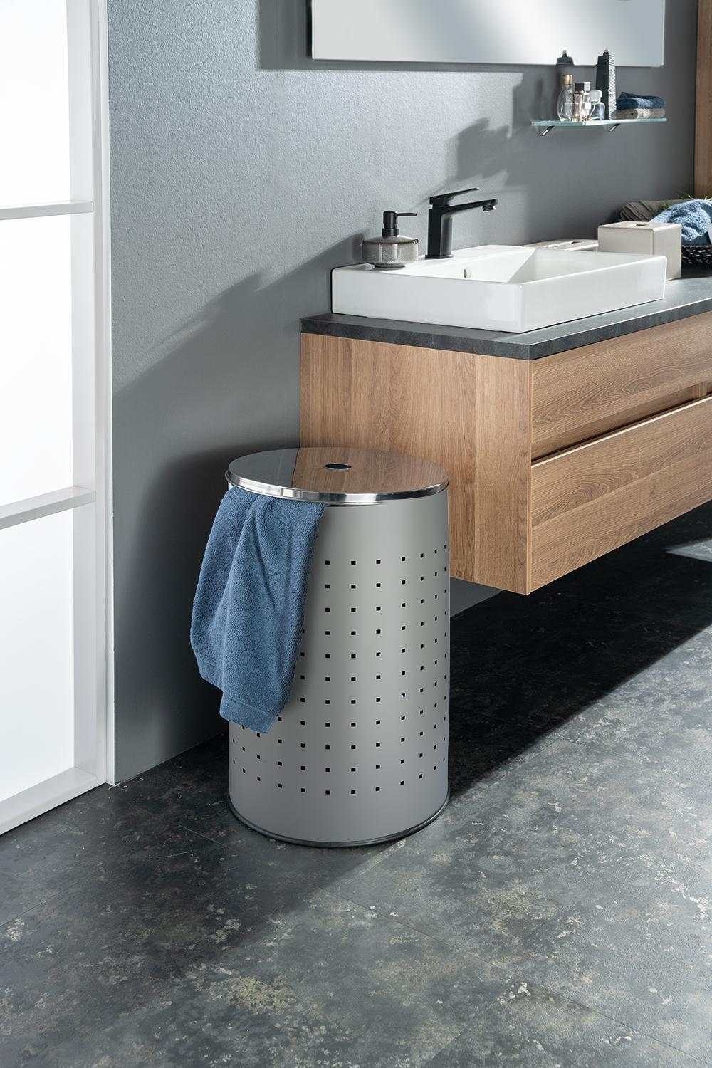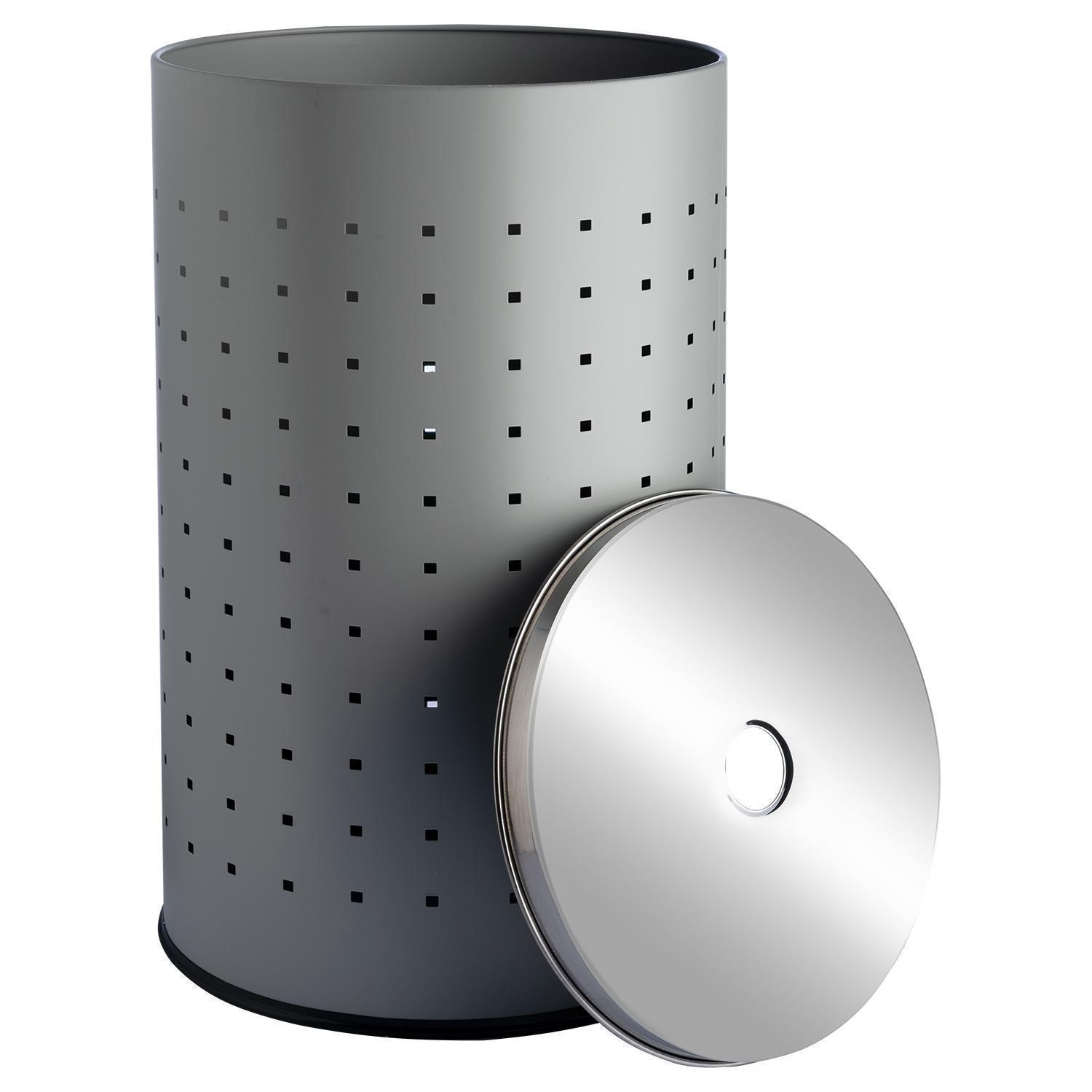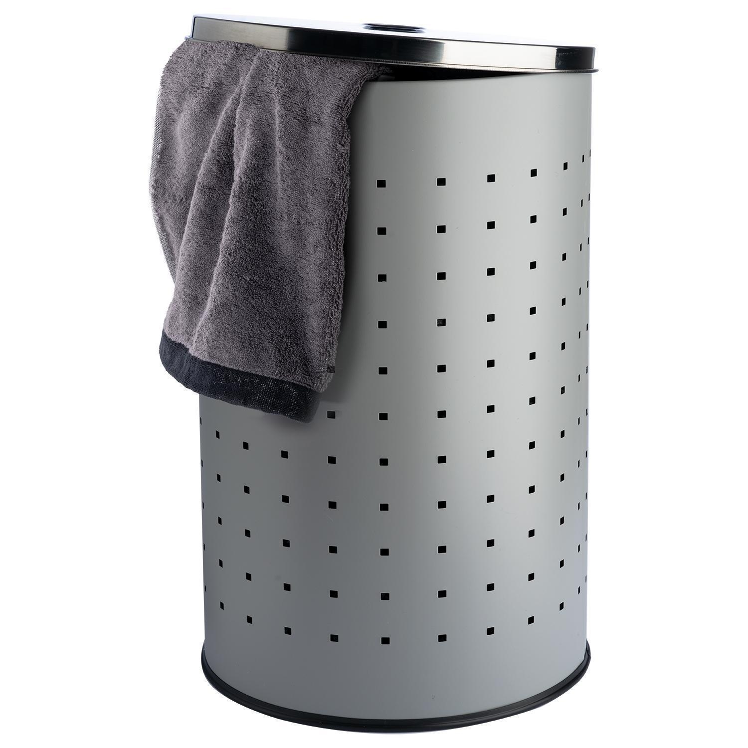 Hier kommt die Wäschetonne aus Edelstahl in Grau, welches der Tonne ein elegantes Design verleiht. Da die meisten Badezimmer in Weiß gehalten sind, fügt sich der Wäschesammler mit seiner grauen Lackierung ideal in jede Badeinrichtung ein. Mit dem Deckel sorgen Sie dafür, dass das Chaos im Wäschekorb nicht sichtbar ist. Dieser lässt sich dank des cleveren Lochs in der Mitte einfach anheben. Großzügige Maße von 57,5 cm Höhe und einem Durchmesser von 35,5 cm bieten rund 54 Liter Fassungsvermögen. So verstauen Sie Ihre ganze Wäsche einfach und schnell. Diese edle Wäschetonne ist nicht nur ein Hingucker im Bad, sondern macht sich ebenso gut im Schlafzimmer, Ankleideraum oder der Waschküche.