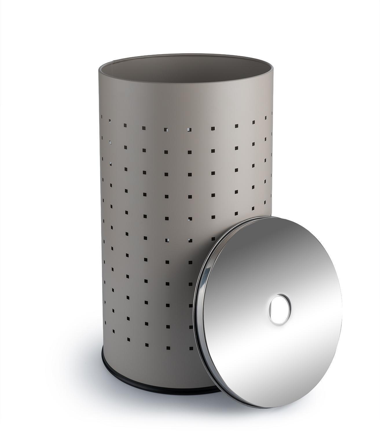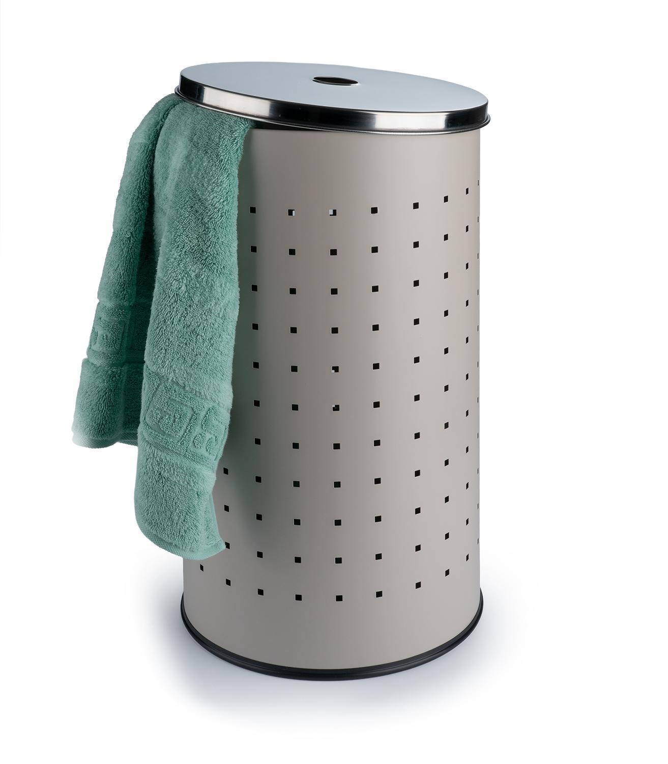 Hier kommt die Wäschetonne aus Edelstahl in Grau, welches der Tonne ein elegantes Design verleiht. Da die meisten Badezimmer in Greige gehalten sind, fügt sich der Wäschesammler mit seiner grauen Lackierung ideal in jede Badeinrichtung ein. Mit dem Deckel sorgen Sie dafür, dass das Chaos im Wäschekorb nicht sichtbar ist. Dieser lässt sich dank des cleveren Lochs in der Mitte einfach anheben. Großzügige Maße von 54 cm Höhe und einem Durchmesser von 29 cm bieten rund 37 Liter Fassungsvermögen. So verstauen Sie Ihre ganze Wäsche einfach und schnell. Diese edle Wäschetonne ist nicht nur ein Hingucker im Bad, sondern macht sich ebenso gut im Schlafzimmer, Ankleideraum oder der Waschküche.