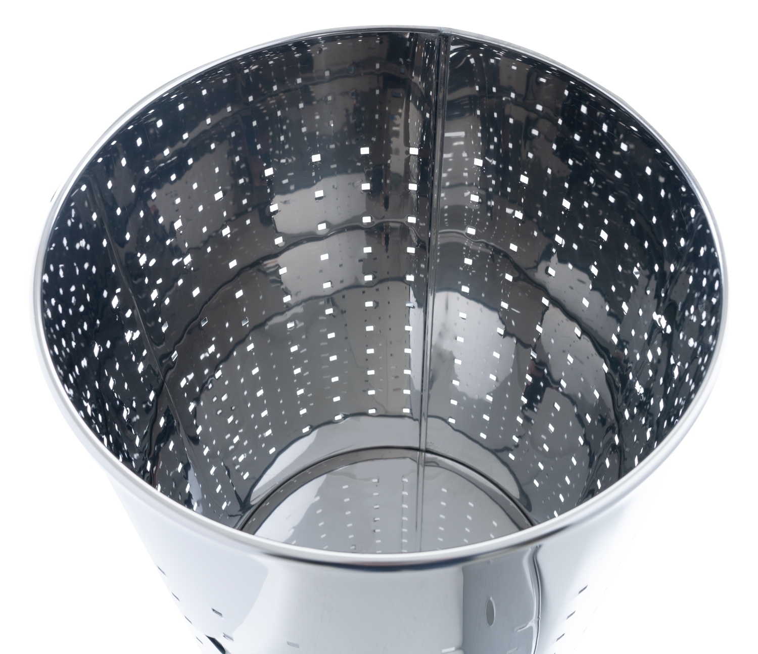Mit diesem Wäschesammler holen Sie sich eine schicke Möglichkeit Ihre schmutzige Wäsche aufzubewahren bis Sie das nächste Mal waschen. Die kompakte Wäschetonne fügt sich dabei sicher wunderbar in ihre Einrichtung ein ohne aufzufallen. Die Edelstahl Wäschetonne misst in der Höhe ca. 58 cm und hat einen Durchmesser von 35,5 cm. Der Wäschesammler verfügt über Belüftungslöcher und einen Deckel zum leichten geräuscharmen Verschließen.