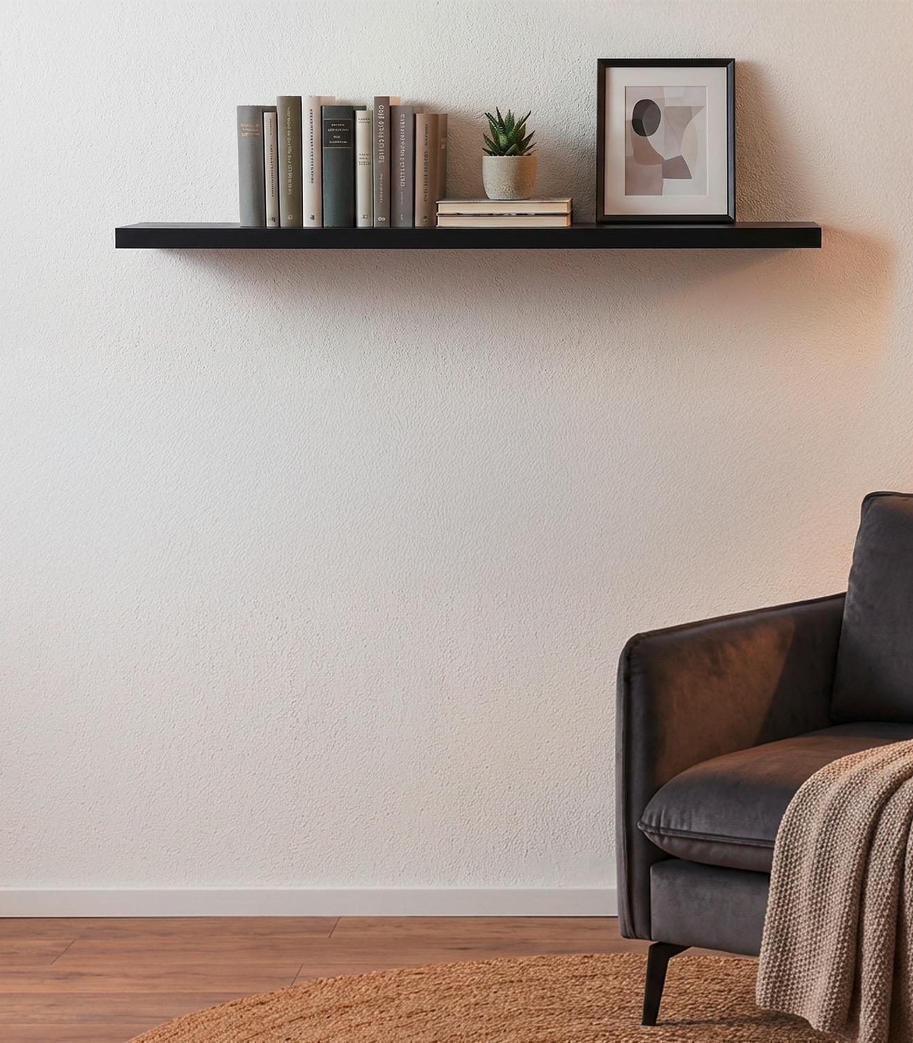 Das Wandboard RIKE von Home4You überzeugt mit modernem Design in Schwarz matt und klarer Linienführung. Gefertigt aus MDF und PVC bietet es mit einer Größe von 100 x 23,5 cm eine praktische Ablagefläche für Bücher, Bilder oder dekorative Elemente. Die schlichte Optik fügt sich harmonisch in verschiedene Wohnstile ein. Das Board ist zur hängenden Wandmontage geeignet und schafft stilvollen Stauraum im Wohn- oder Arbeitsbereich.