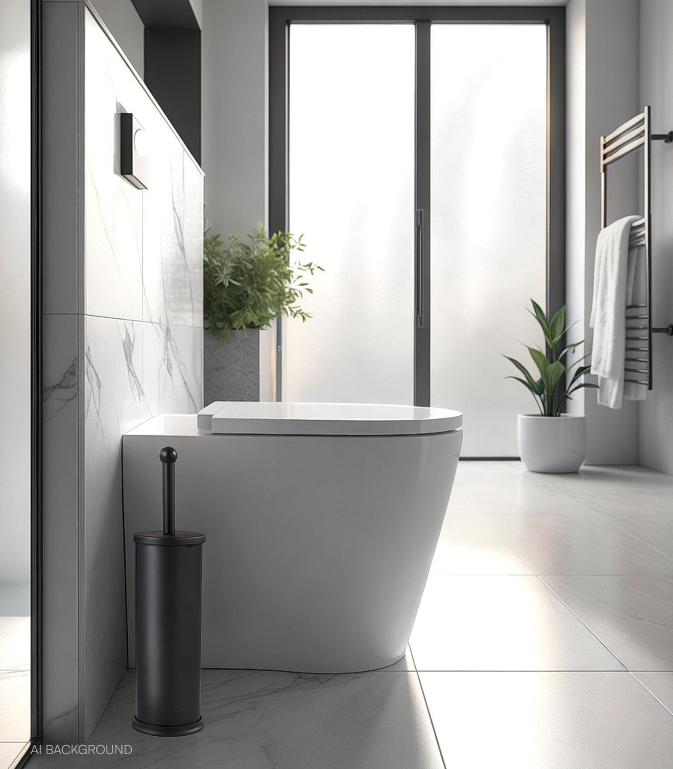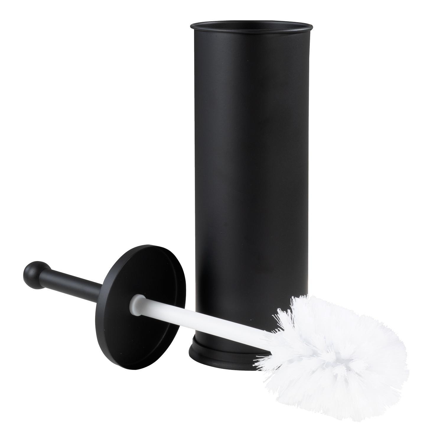 Die WC-Garnitur TILLI von Home4You ist aus Edelstahl in schwarz gefertigt und zeichnet sich durch ihre langlebige Qualität aus. Mit einer Höhe von 39,5 cm passt sie perfekt in jedes Badezimmer. Die Kunststoffbürste verfügt über einen komfortablen Griff und einen wechselbaren Bürstenkopf, was für zusätzliche Hygiene sorgt. Der Kunststoff-Behälter hält die Bürste ordentlich und sauber, was die Reinigung erleichtert und für ein hygienisches Umfeld sorgt.