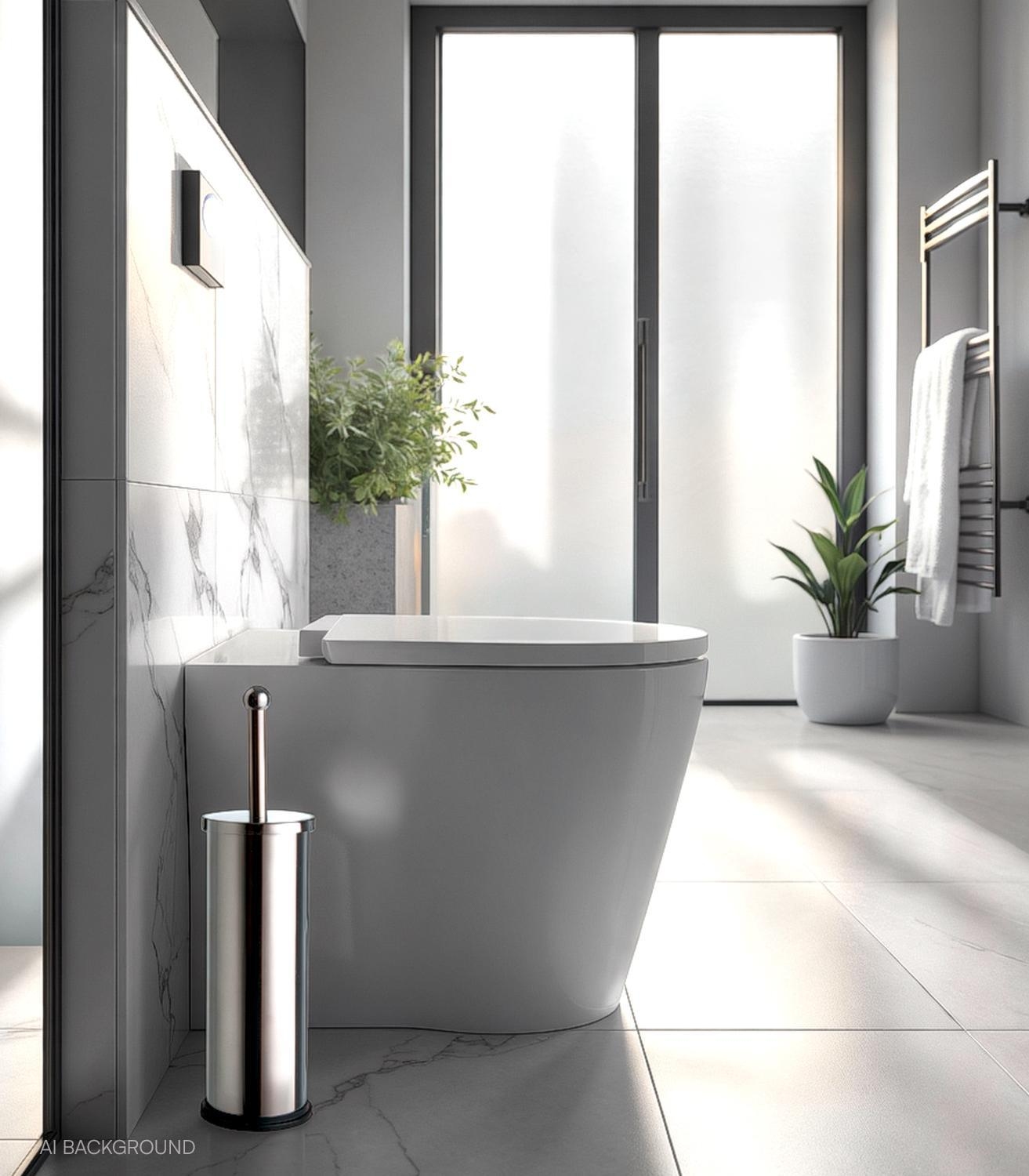 Die WC-Garnitur TILLI von Home4You ist aus rostfreiem Edelstahl gefertigt und zeichnet sich durch ihre langlebige Qualität aus. Mit einer Höhe von 39,5 cm passt sie perfekt in jedes Badezimmer. Die Kunststoffbürste verfügt über einen komfortablen Griff und einen wechselbaren Bürstenkopf, was für zusätzliche Hygiene sorgt. Der Kunststoff-Behälter hält die Bürste ordentlich und sauber, was die Reinigung erleichtert und für ein hygienisches Umfeld sorgt.