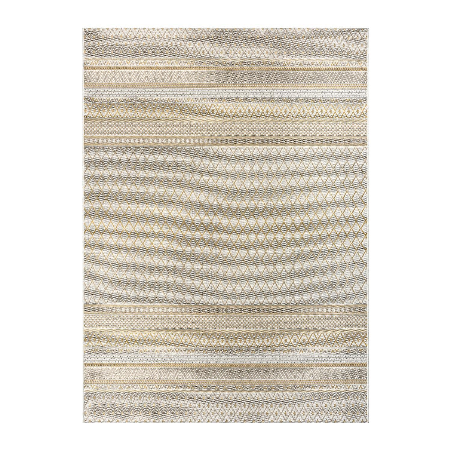 Der In- und Outdoorteppich OTTAWA in Beige und Gelb verbindet modernes Design mit hoher Funktionalität. Das dekorative Rautenmuster setzt stilvolle Akzente und sorgt für eine freundliche Atmosphäre. Mit den Maßen 120 x 160 cm bietet er großzügige Fläche und ist vielseitig einsetzbar. Gefertigt aus robustem Polypropylen überzeugt er durch seine wasserabweisenden und UV-beständigen Eigenschaften. Damit eignet er sich ideal für Wohnräume, Terrassen, Balkone oder den Garten und schafft überall ein gemütliches Ambiente.