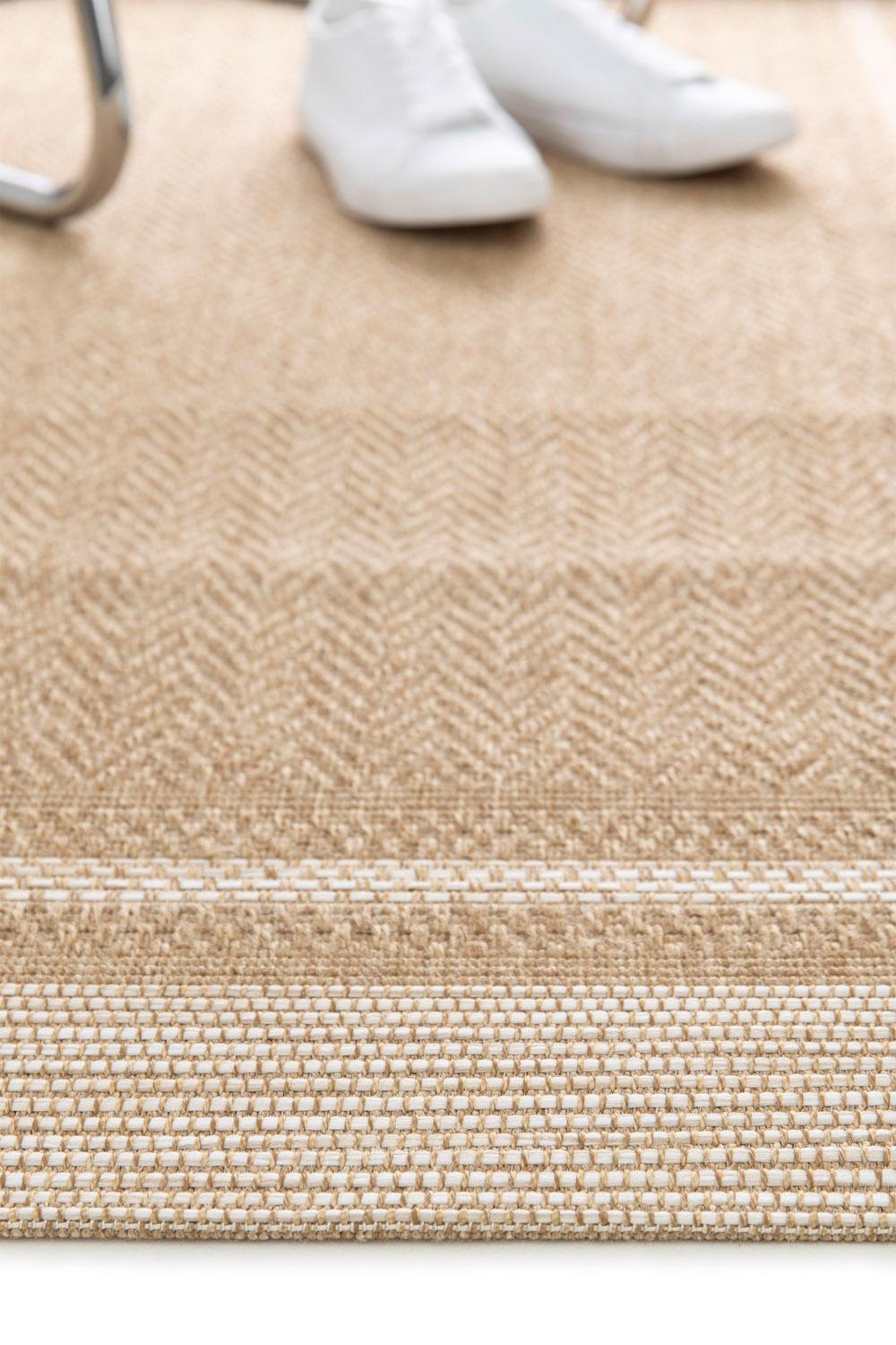 Der In- und Outdoorteppich PERGOLA besticht durch seine braune Sisaloptik und weißer Bordüre. Mit einer Größe von 160 x 230 cm ist er vielseitig einsetzbar und eignet sich sowohl für den Innen- als auch für den Außenbereich. Das Material aus 100 % Polypropylen macht den maschinengewebten Teppich wasserabweisend, UV-beständig und pflegeleicht. Dank der Handwäsche-Reinigung bleibt der Teppich immer in einem tadellosen Zustand und bringt Eleganz und Funktionalität in jeden Raum.