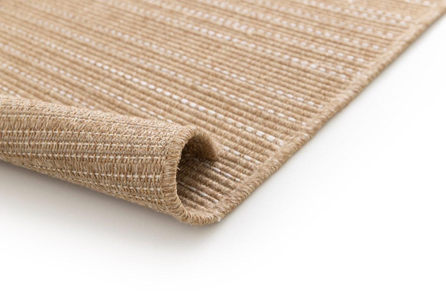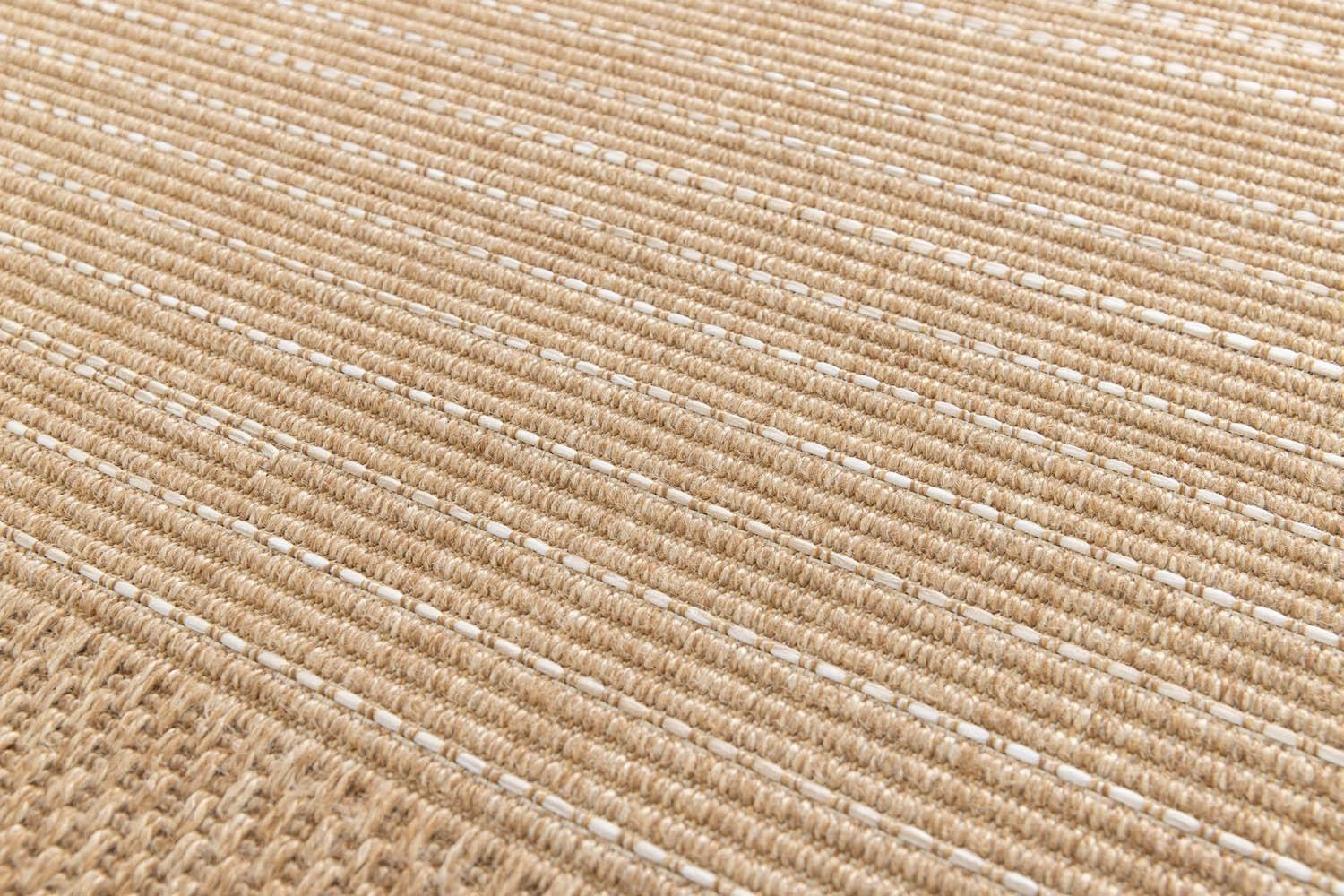 Der In- und Outdoorteppich PERGOLA besticht durch seine braune Sisaloptik und weißen Querstreifen. Mit einer Größe von 120 x 170 cm ist er vielseitig einsetzbar und eignet sich sowohl für den Innen- als auch für den Außenbereich. Das Material aus 100 % Polypropylen macht den maschinengewebten Teppich wasserabweisend, UV-beständig und pflegeleicht. Dank der Handwäsche-Reinigung bleibt der Teppich immer in einem tadellosen Zustand und bringt Eleganz und Funktionalität in jeden Raum.