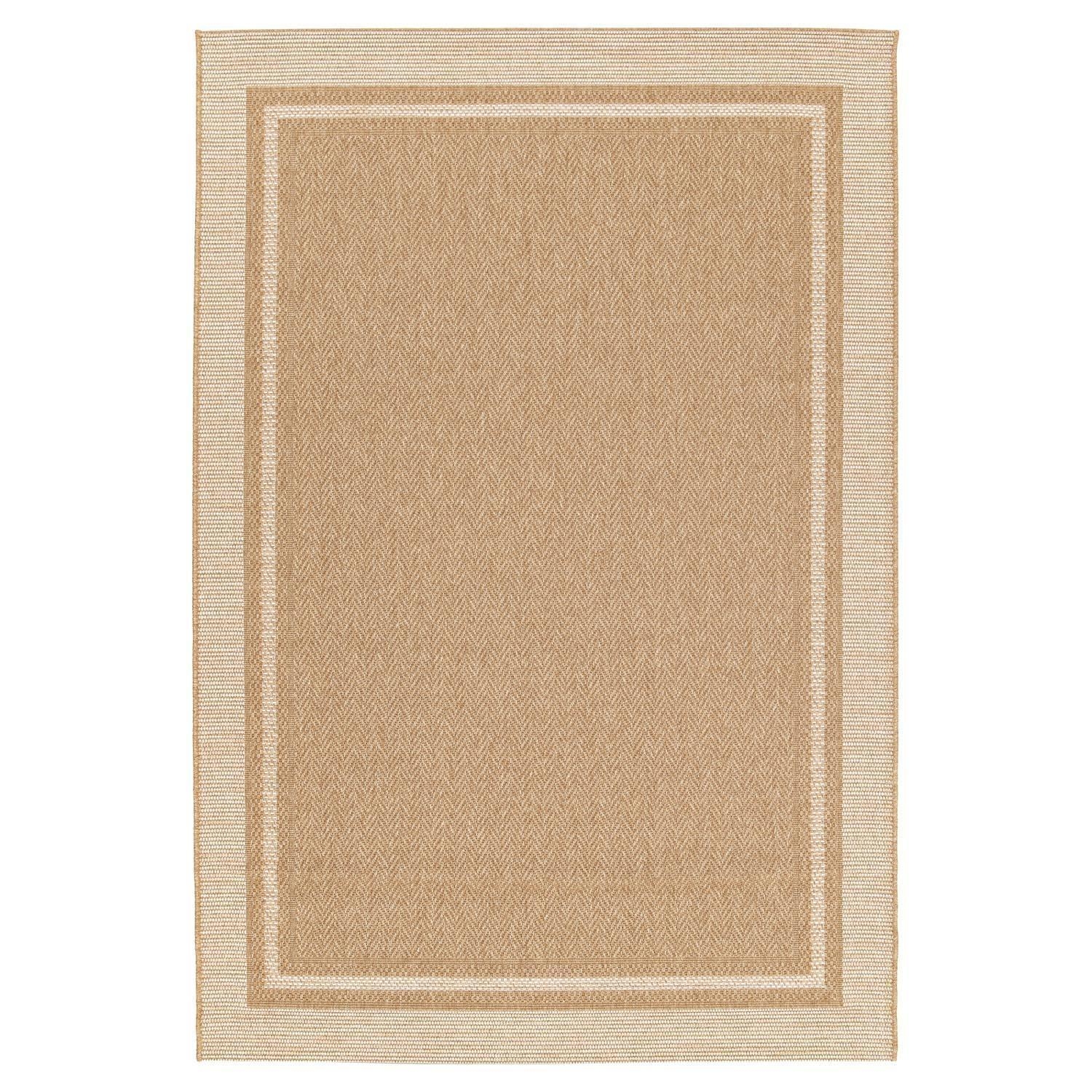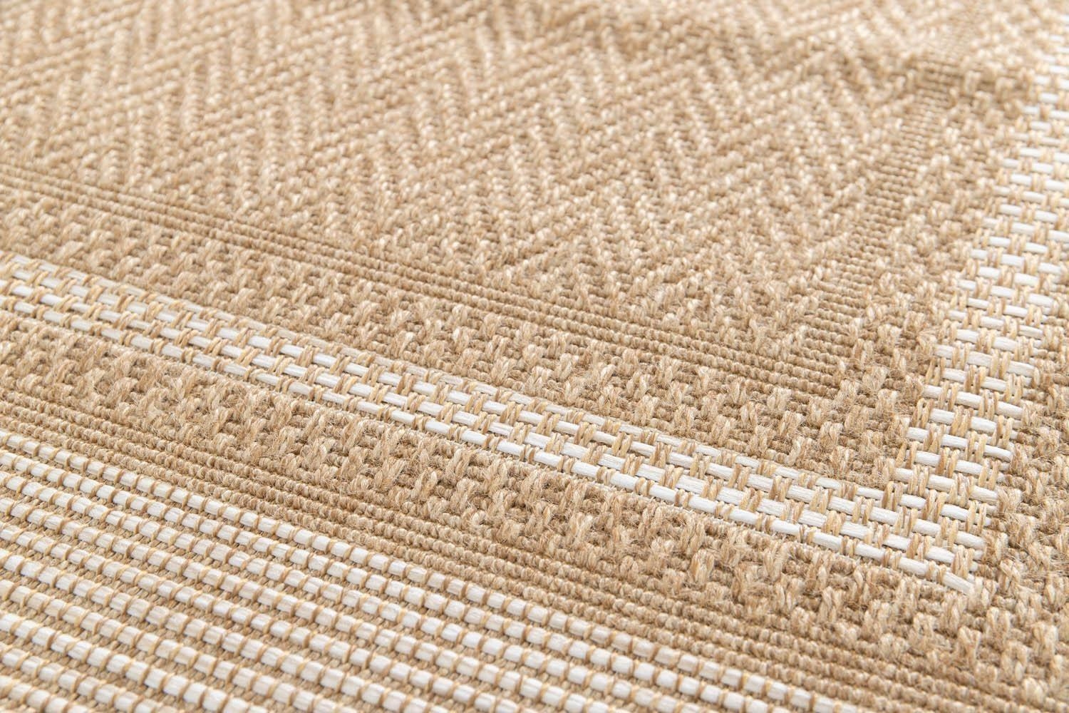 Der In- und Outdoorteppich PERGOLA besticht durch seine braune Sisaloptik und weiße Bordüre. Mit einer Größe von 80 x 150 cm ist er vielseitig einsetzbar und eignet sich sowohl für den Innen- als auch für den Außenbereich. Das Material aus 100 % Polypropylen macht den maschinengewebten Teppich wasserabweisend, UV-beständig und pflegeleicht. Dank der Handwäsche-Reinigung bleibt der Teppich immer in einem tadellosen Zustand und bringt Eleganz und Funktionalität in jeden Raum.