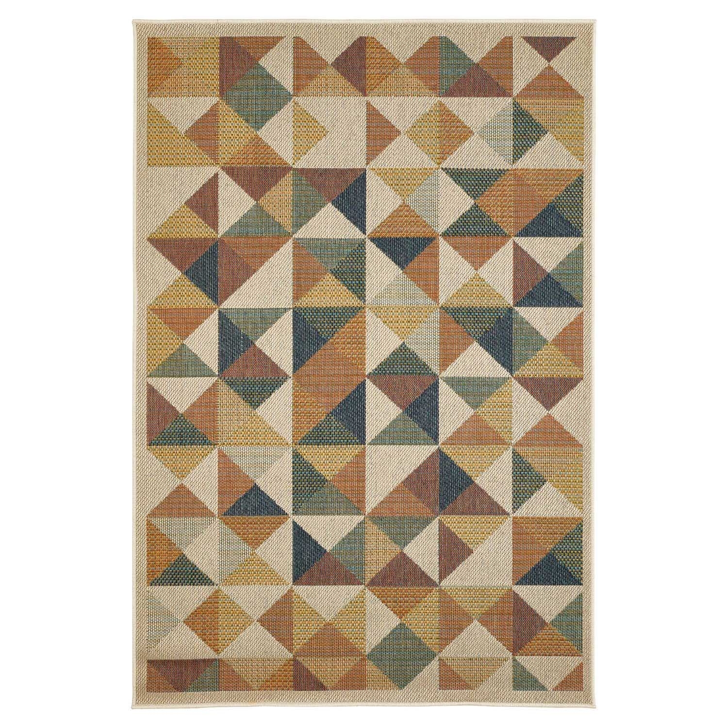 Der In- und Outdoorteppich SEDONA in Braun, Beige, Blau und Grün besteht aus Polyester und ist 160 cm breit und 230 cm lang. Dieser pflegeleichte Kunstfaser-In- und Outdoorteppich verschönert das Zuhause in verschiedenen Räumen und im Terrassenbereich.
