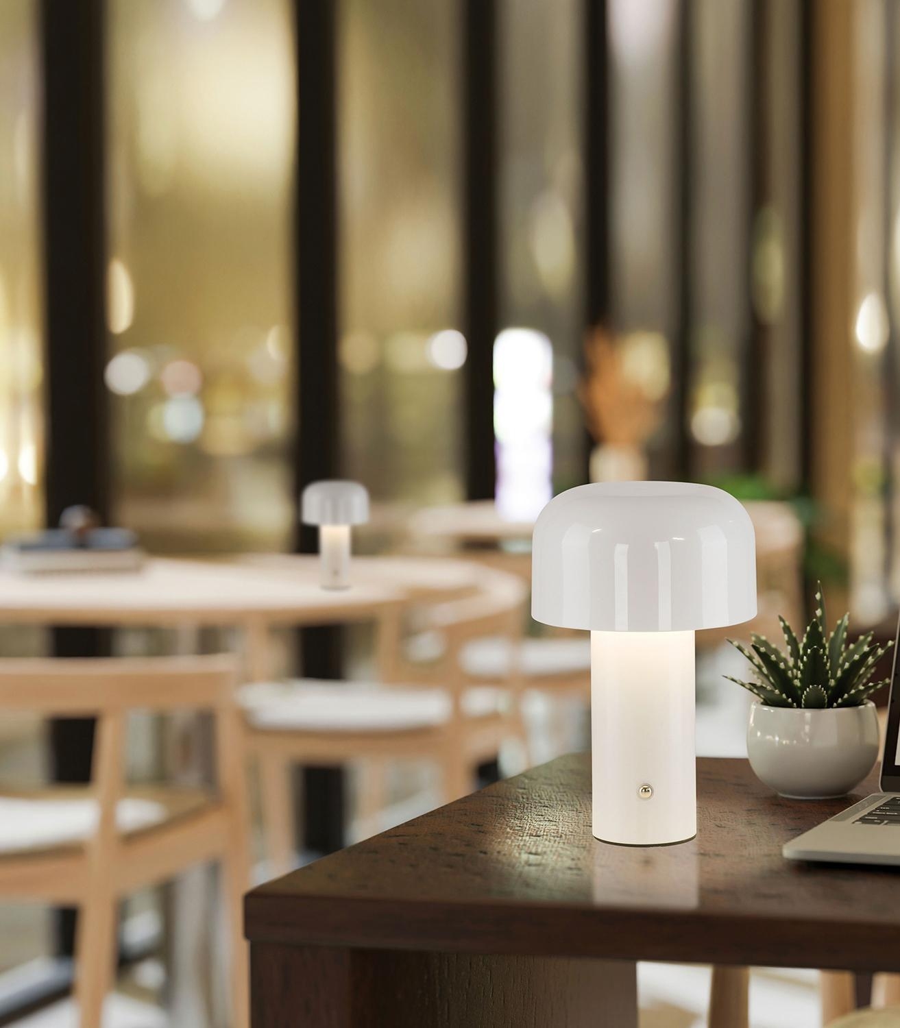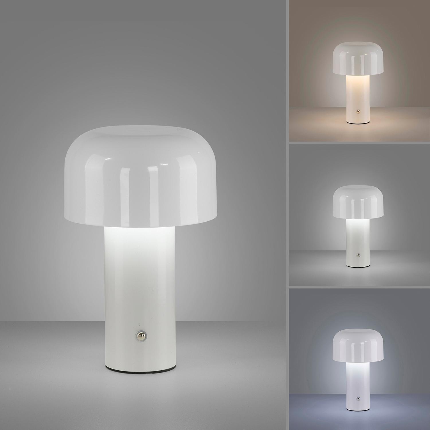 Die LED-Tischlampe AGNES der Marke Just Light. besteht aus weißem Kunststoff und verfügt über einen Durchmesser von 12,9 cm sowie eine Höhe von 21,6 cm. Sie ist mit einem fest verbauten LED-Leuchtmittel ausgestattet, das eine Leistung von 1 Watt und eine maximale Lichtstärke von 210 Lumen bietet. Die Farbtemperatur ist im Bereich von 2700 bis 5000 Kelvin einstellbar. Die Helligkeit lässt sich stufenlos über einen integrierten Touchsensor dimmen. Im Lieferumfang ist ein USB-C-Ladekabel enthalten. Das Leuchtmittel ist im Lieferumfang enthalten, jedoch nicht austauschbar.