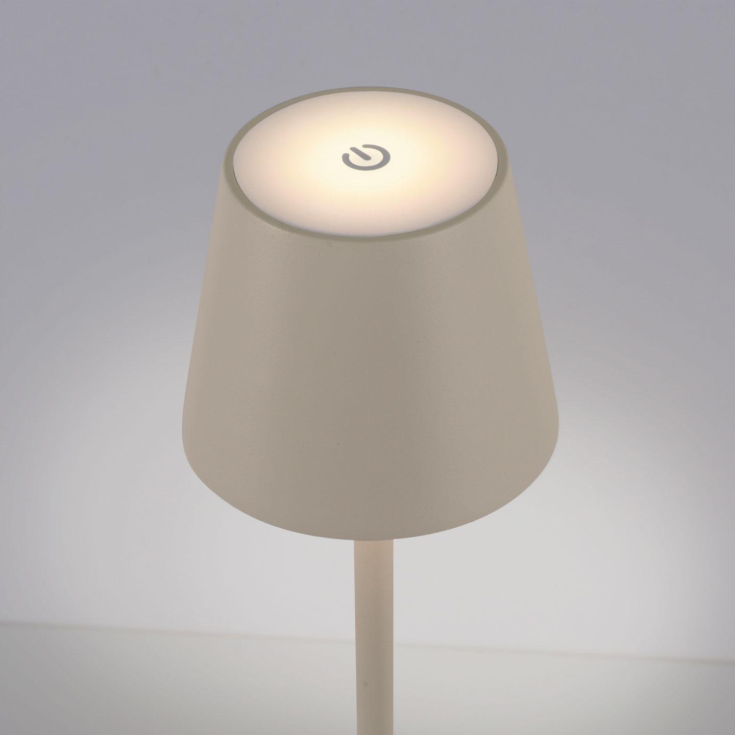 Die Akku LED-Tischlampe EURIA der Marke Just Light. überzeugt mit ihrem modernen Design aus Eisen in Greige. Sie ist über eine auswechselbare Stange höhenverstellbar von 23 bis 37 cm und verfügt über eine 2-fach dimmbare Up-Down-Beleuchtung mit Memoryfunktion, die bequem per Touchsensor gesteuert wird. Mit einem wiederaufladbaren Akku und USB-Ladekabel ausgestattet, eignet sich die Lampe dank IP54-Zertifizierung auch für den Außenbereich. Die integrierte LED mit einer Leistung von 2,5 Watt liefert 220 Lumen bei 3000 K, ist jedoch nicht austauschbar.