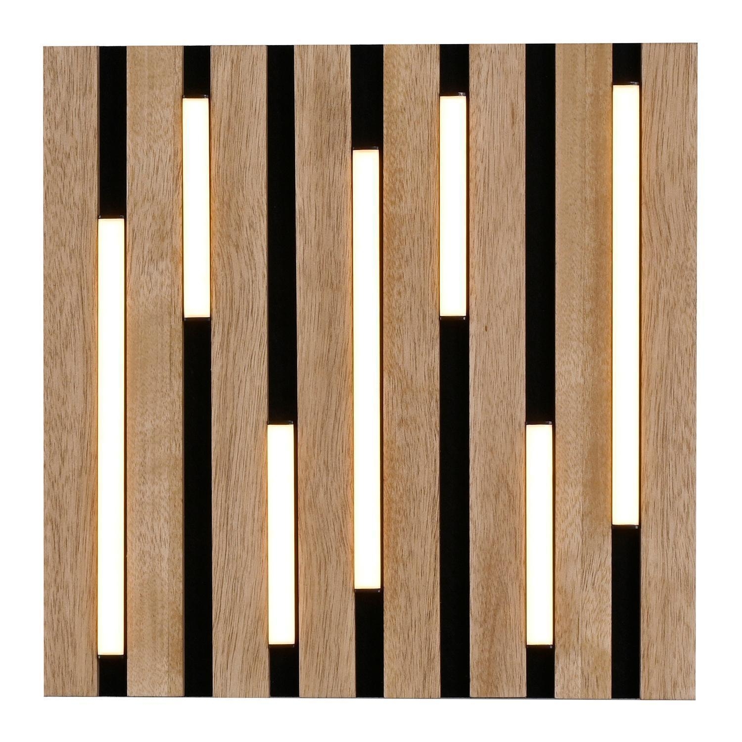 Die LED-Deckenleuchte AKUSTIK der Marke Just Light. besteht aus einem Gestell aus Metall in Schwarz und ist mit einem Lampenschirm aus Echtholzfurnier auf Akustikfilz ausgestattet. Sie misst 30 cm in der Breite, 30 cm in der Tiefe und 5 cm in der Höhe. Integriert ist ein LED-Leuchtmittel, das im Lieferumfang enthalten und nicht austauschbar ist. Es verfügt über eine Leistung von 10 Watt, eine Lichtstärke von 1450 Lumen sowie eine Farbtemperatur von 3000 Kelvin.