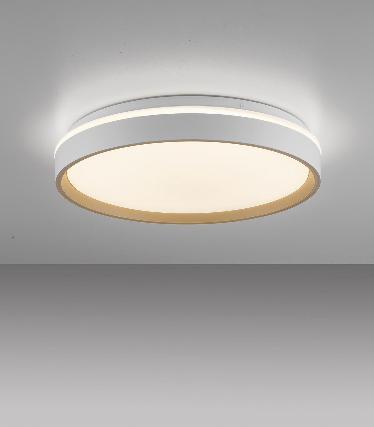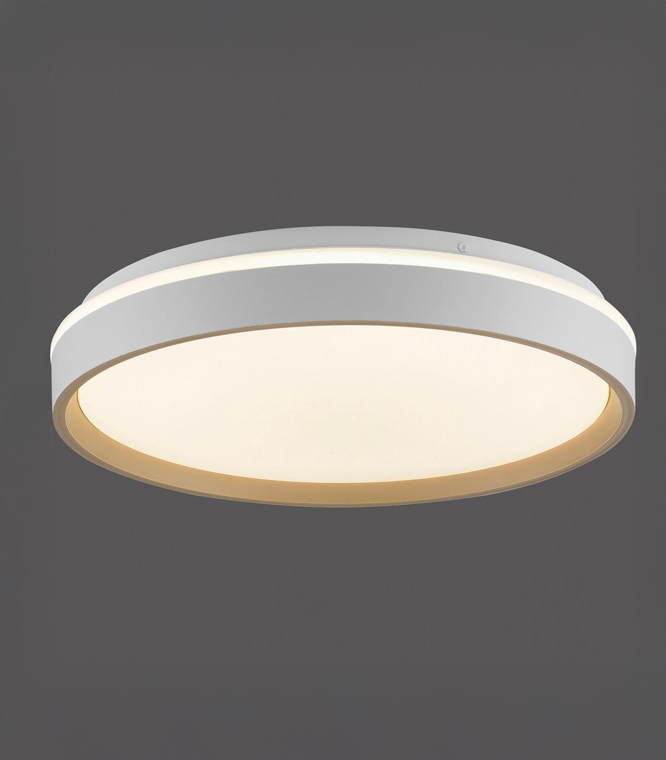 Die LED-Deckenleuchte MIO der Marke Just Light. besteht aus Kunststoff in Weiß. Sie verfügt über eine Anpassung der Farbtemperatur und ist dimmbar. Darüber hinaus ist die Leuchte mit einer Memory- und Timerfunktion ausgestattet, die sich über die Fernbedienung einstellen und steuern lassen. Der Durchmesser beträgt 38,5 cm, die Höhe 7,5 cm. Verbaut ist ein LED-Leuchtmittel mit einer Leistung von 20 Watt, das im Lieferumfang enthalten und nicht austauschbar ist. Die Lichtfarbe liegt im Bereich von 2700 bis 6500 Kelvin, bei einer Helligkeit von 2700 Lumen.