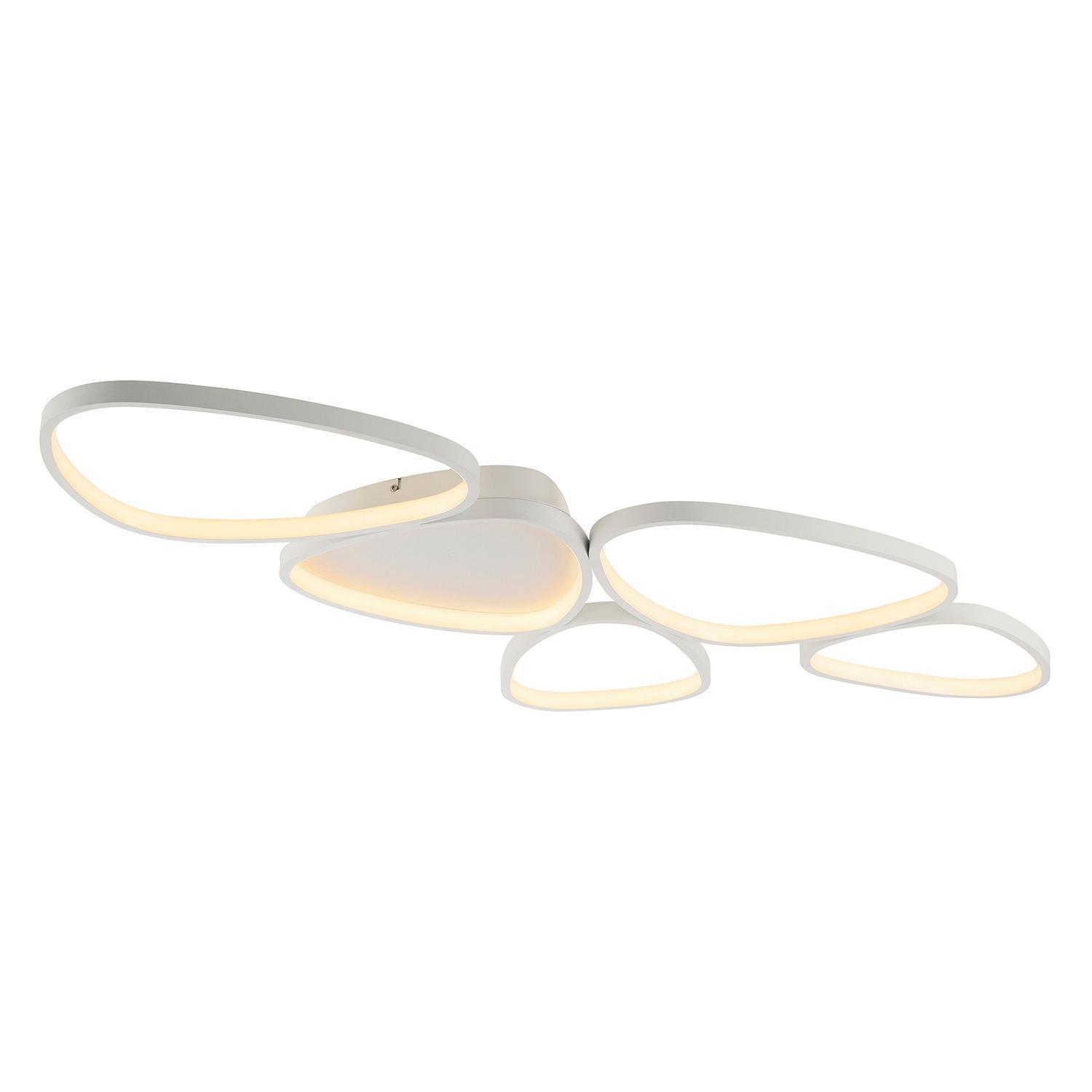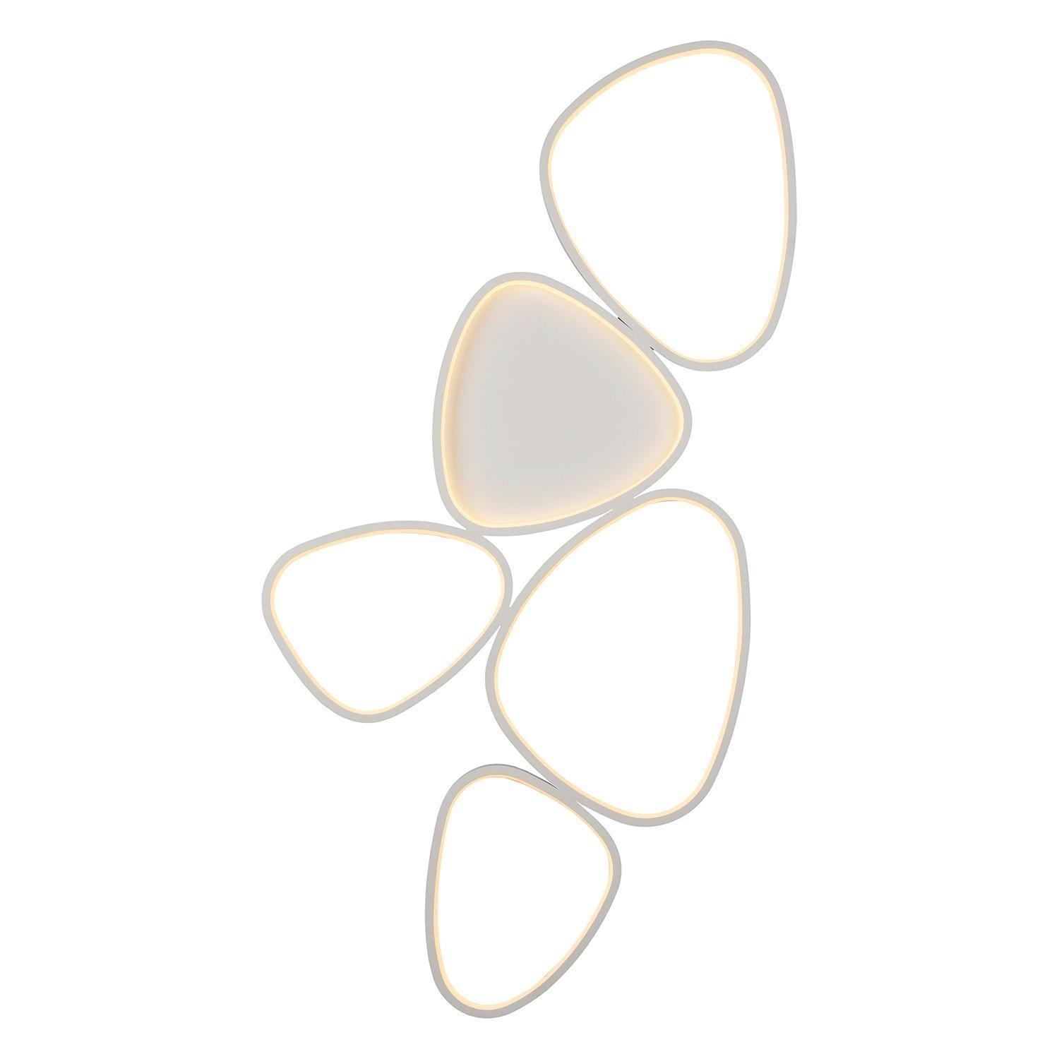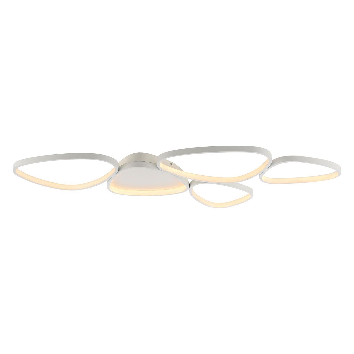 Die LED-Deckenleuchte PEBBLES der Marke Just Light. ist eine moderne und funktionale Beleuchtungslösung. Hergestellt aus weißem Kunststoff, fügt sie sich nahtlos in jedes Raumdesign ein. Diese Deckenleuchte ist 3-stufig dimmbar über einen herkömmlichen Wandschalter und verfügt über eine praktische Memory-Funktion. Mit einer Breite von 116,5 cm, einer Höhe von 6,5 cm und einer Tiefe von 56,5 cm bietet sie eine großflächige Ausleuchtung. Die Lampe enthält ein fest eingebautes LED-Leuchtmittel mit einer Leistung von 42 Watt, einer Farbtemperatur von 3000 Kelvin und einer Helligkeit von 6100 Lumen, das nicht ausgetauscht werden kann.