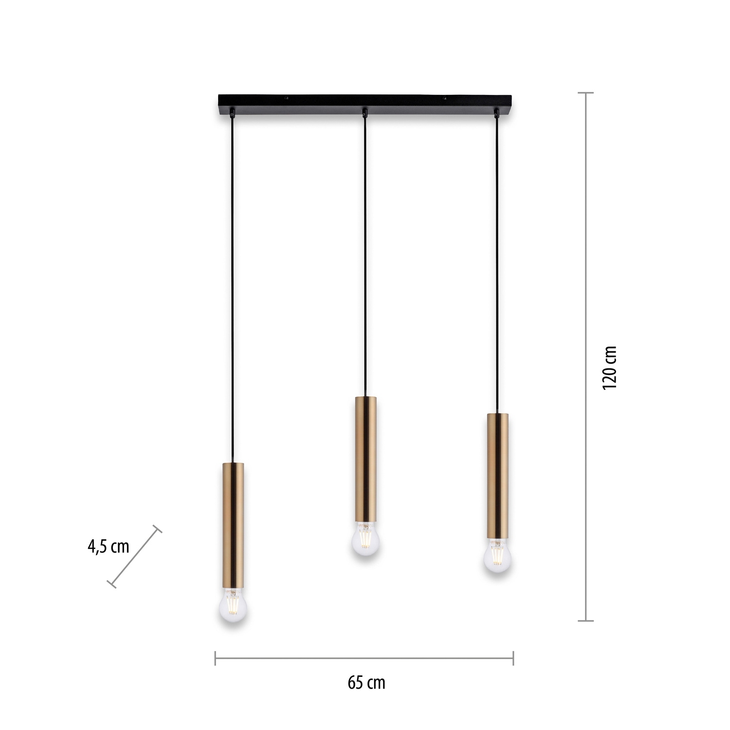 Schwarz - Messing - Metall - 3-flammig - 65 x 120 cm