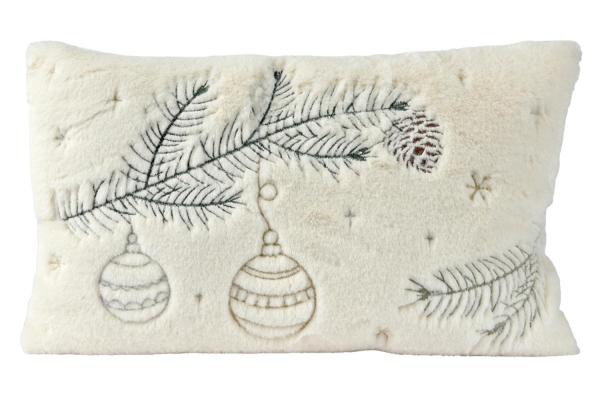 Das Kissen ZWEGGY in Weiß und Schwarz verleiht Ihrer Weihnachtsdekoration einen modernen und zugleich gemütlichen Akzent. Mit einer Größe von 50 x 30 cm bietet es dekorativen Komfort auf Sofa, Sessel oder Bett. Gefertigt aus Polyester in schicker Samtoptik, überzeugt es durch seine weiche Haptik. Tannenzweige- und Weihnachtskugeln als Motive runden das festliche Design stimmungsvoll ab.