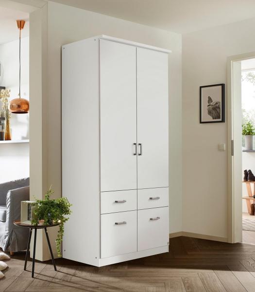 | Lieferumfang: | 1 Kleiderschrank mit 2 Türen, 4 Schubladen, 2 Einlegeböden und 1 Kleiderstange |