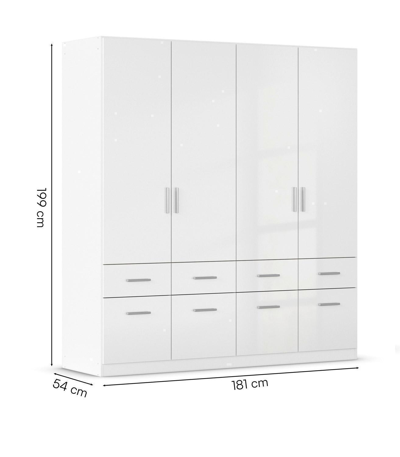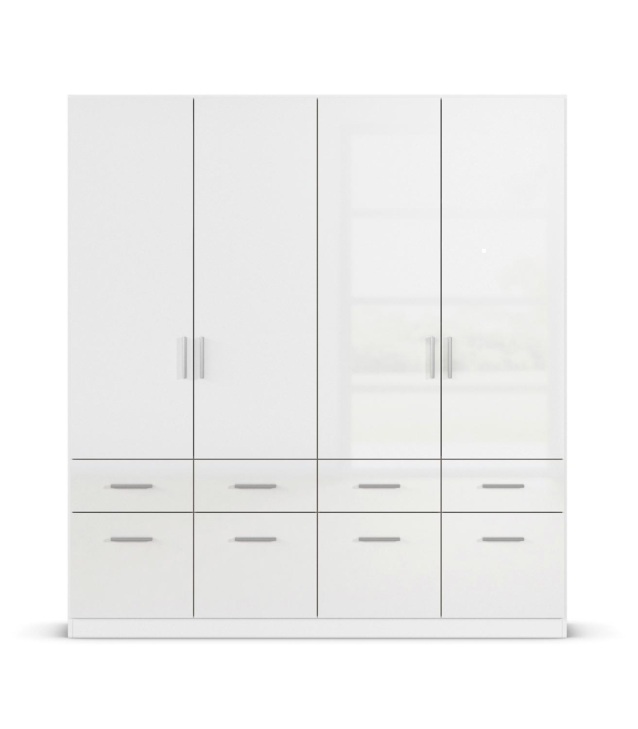| Lieferumfang: | 1 Kleiderschrank mit 4 Türen, 8 Schubladen, 2 Einlegeböden und 1 Kleiderstange |