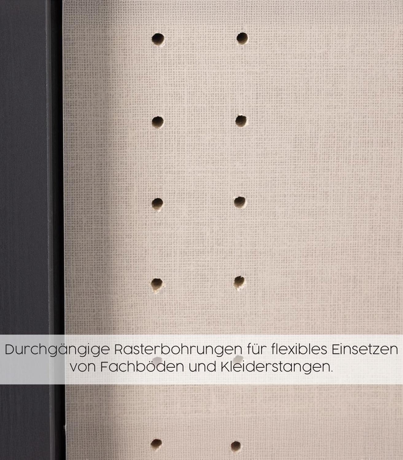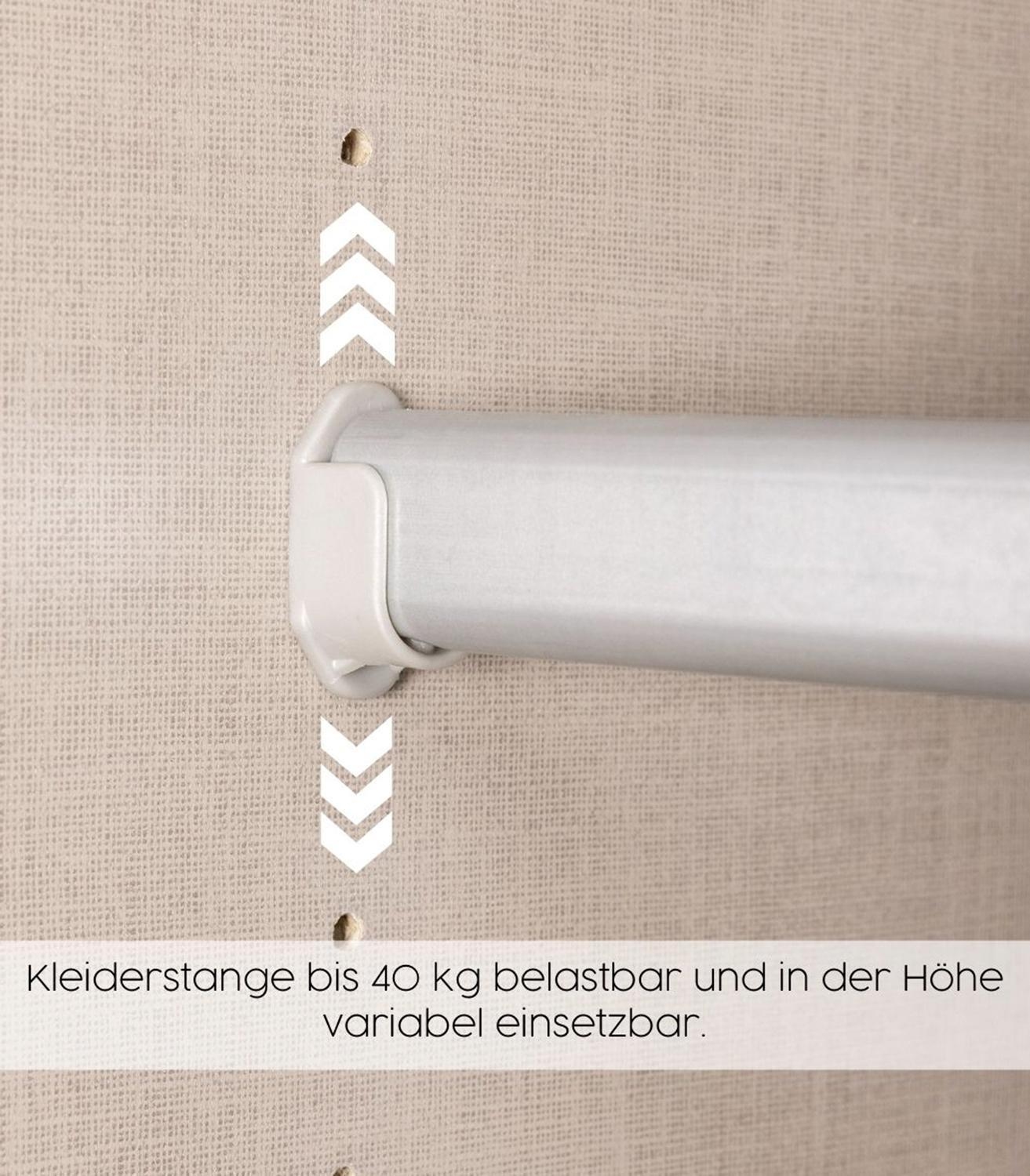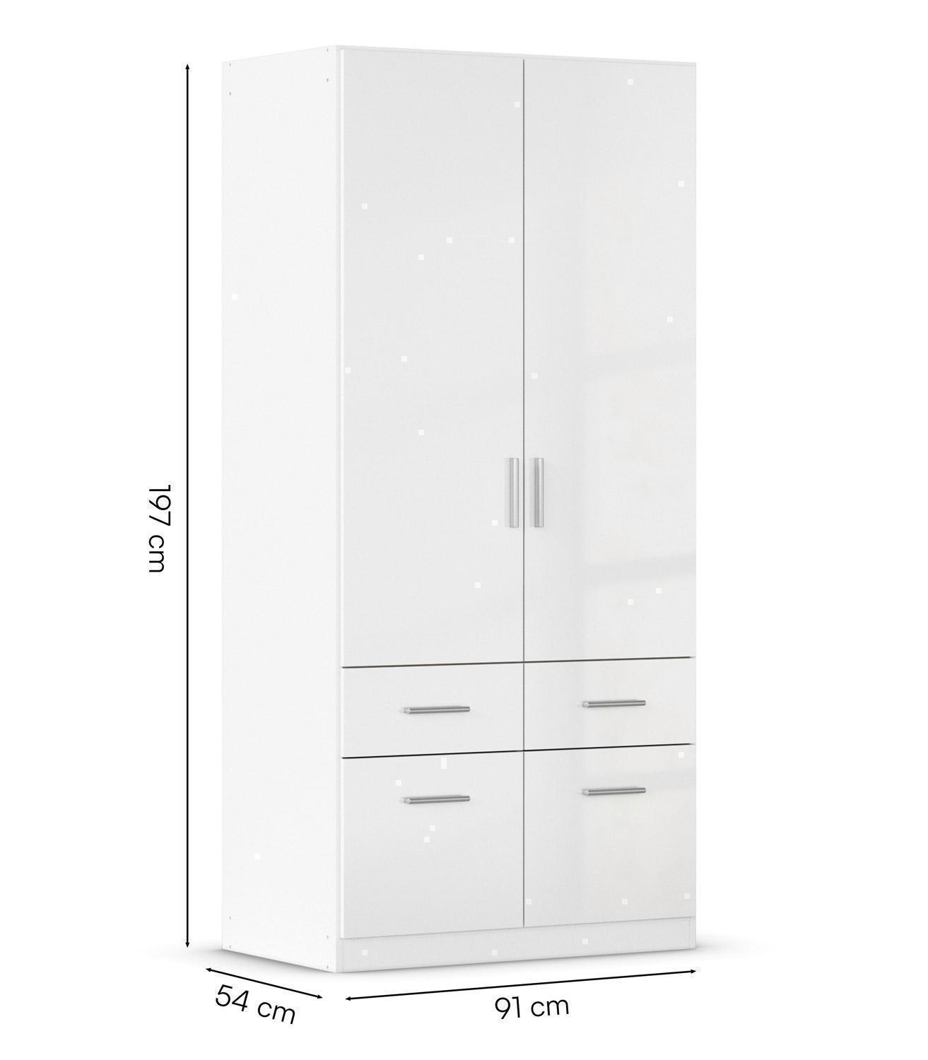 | Lieferumfang: | 1 Kleiderschrank mit 2 Türen, 4 Schubladen und 1 Kleiderstange |