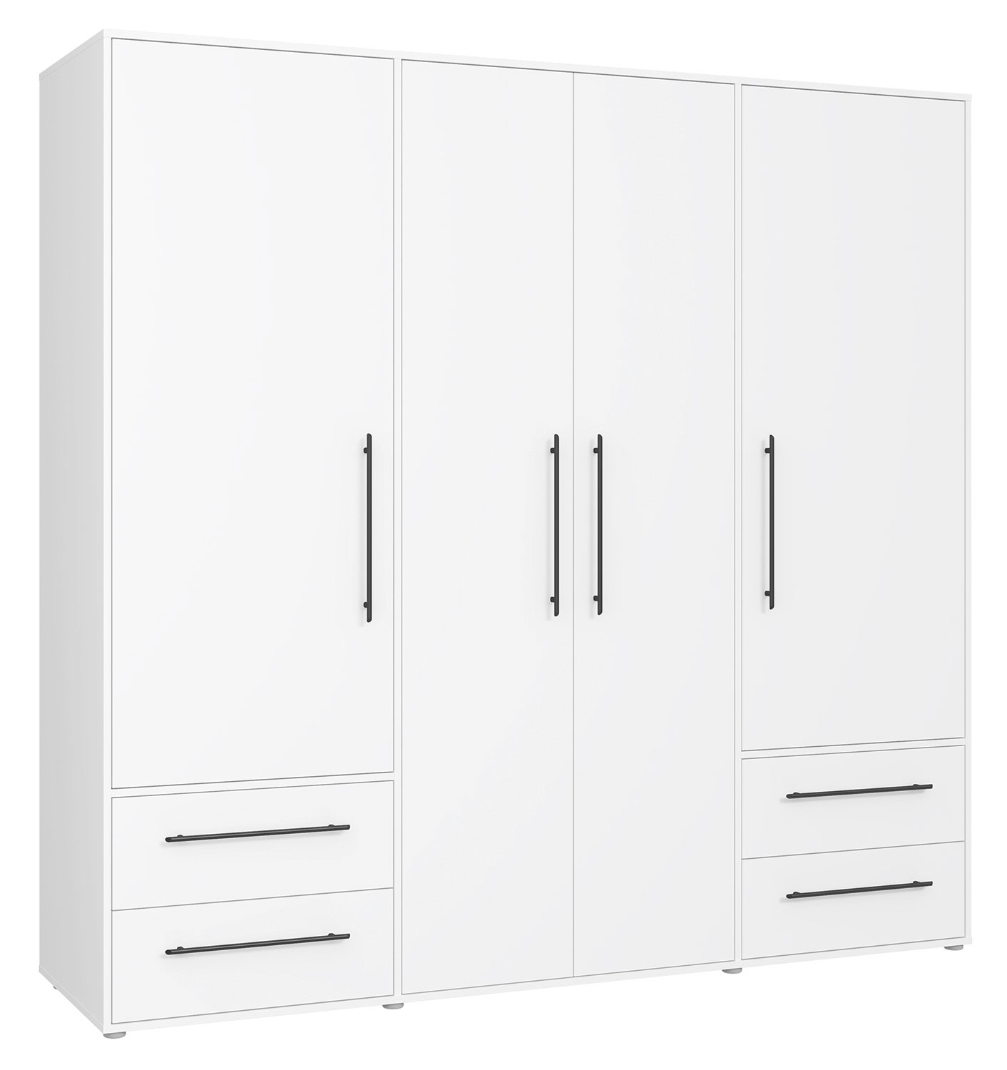 206 x 200 cm - 4 Türen - 4 Schubladen - Weiß matt