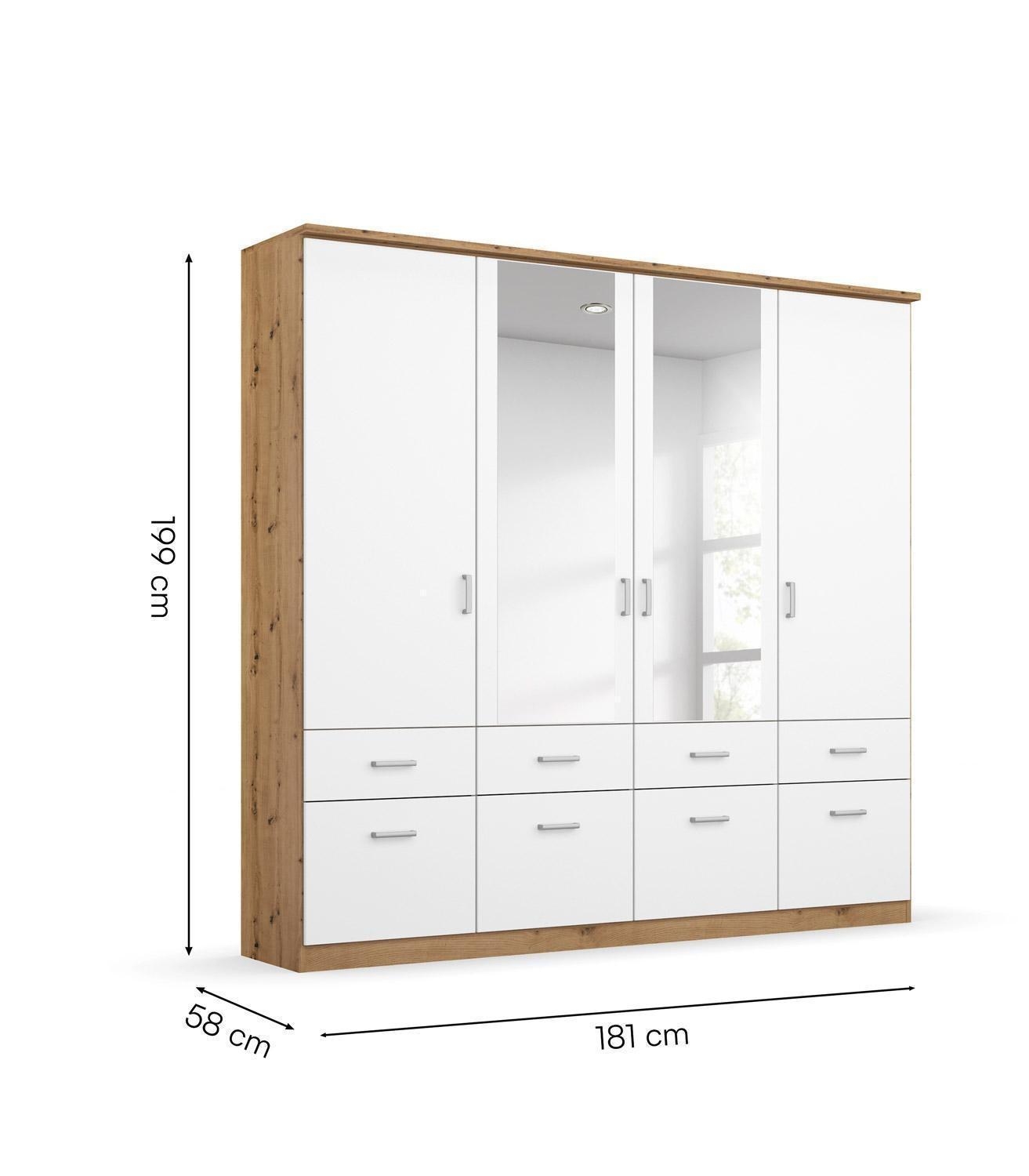 Alpinweiß - Artisan Eiche Dekor - 181 x 199 cm - 4 Türen - 8 Schubladen