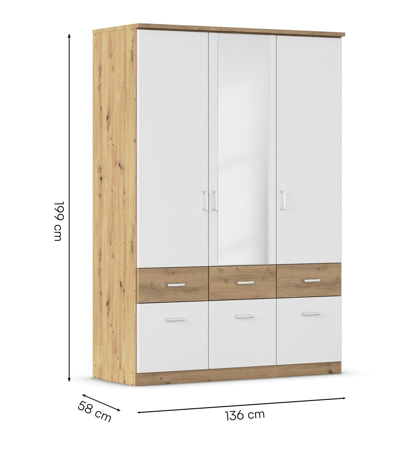 Alpinweiß - Artisan Eiche Dekor - 136 x 199 cm - 3 Türen