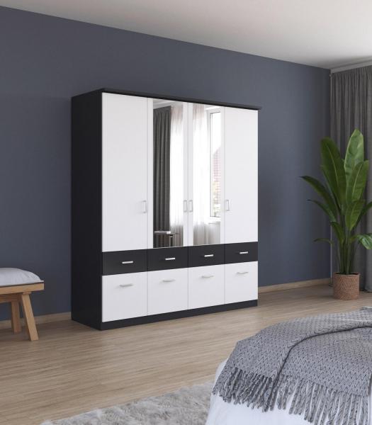 | Lieferumfang: | 1 Kleiderschrank mit 2 Spiegeltüren, 2 Türen, 8 Schubladen, 1 Kleiderstange und 4 Einlegeböden |