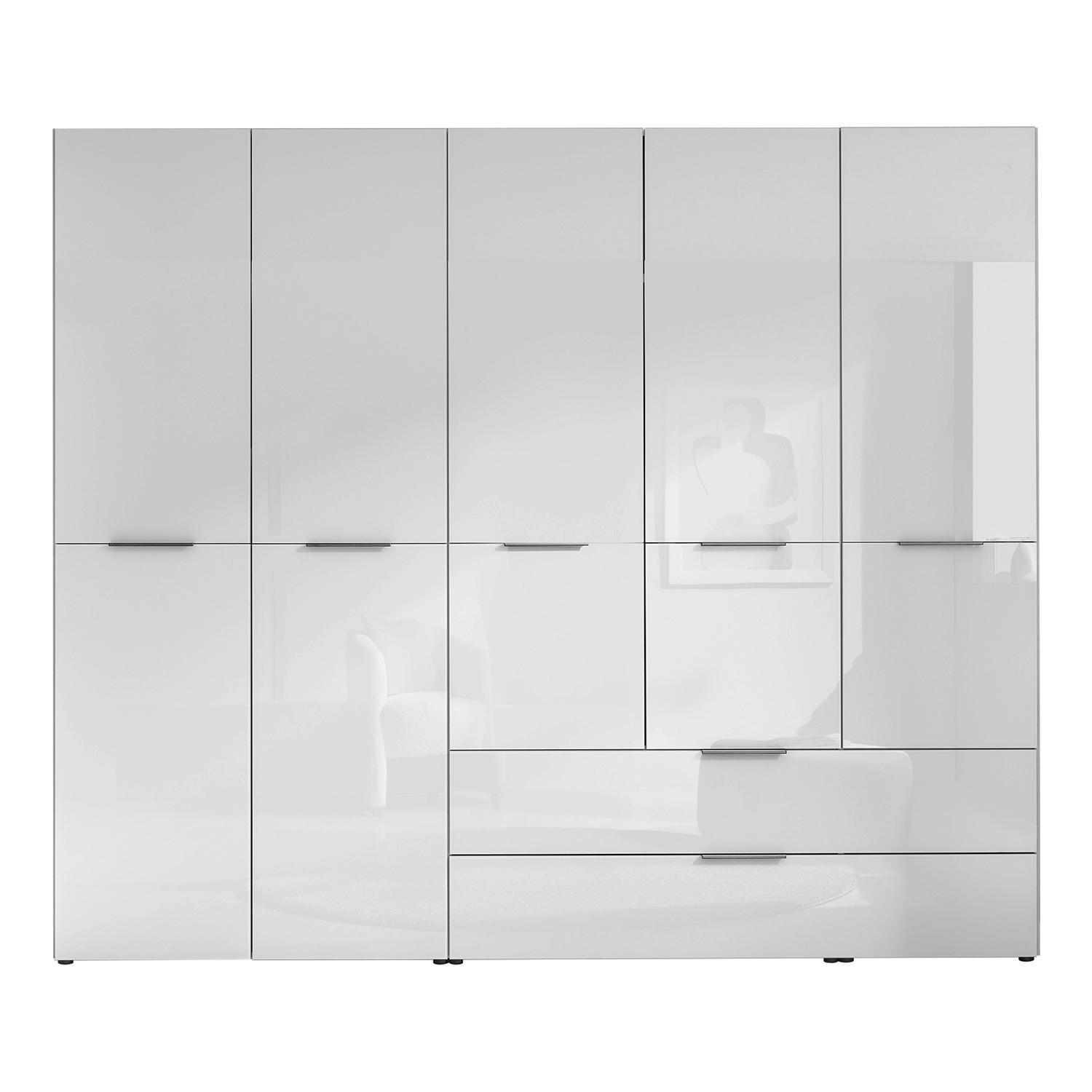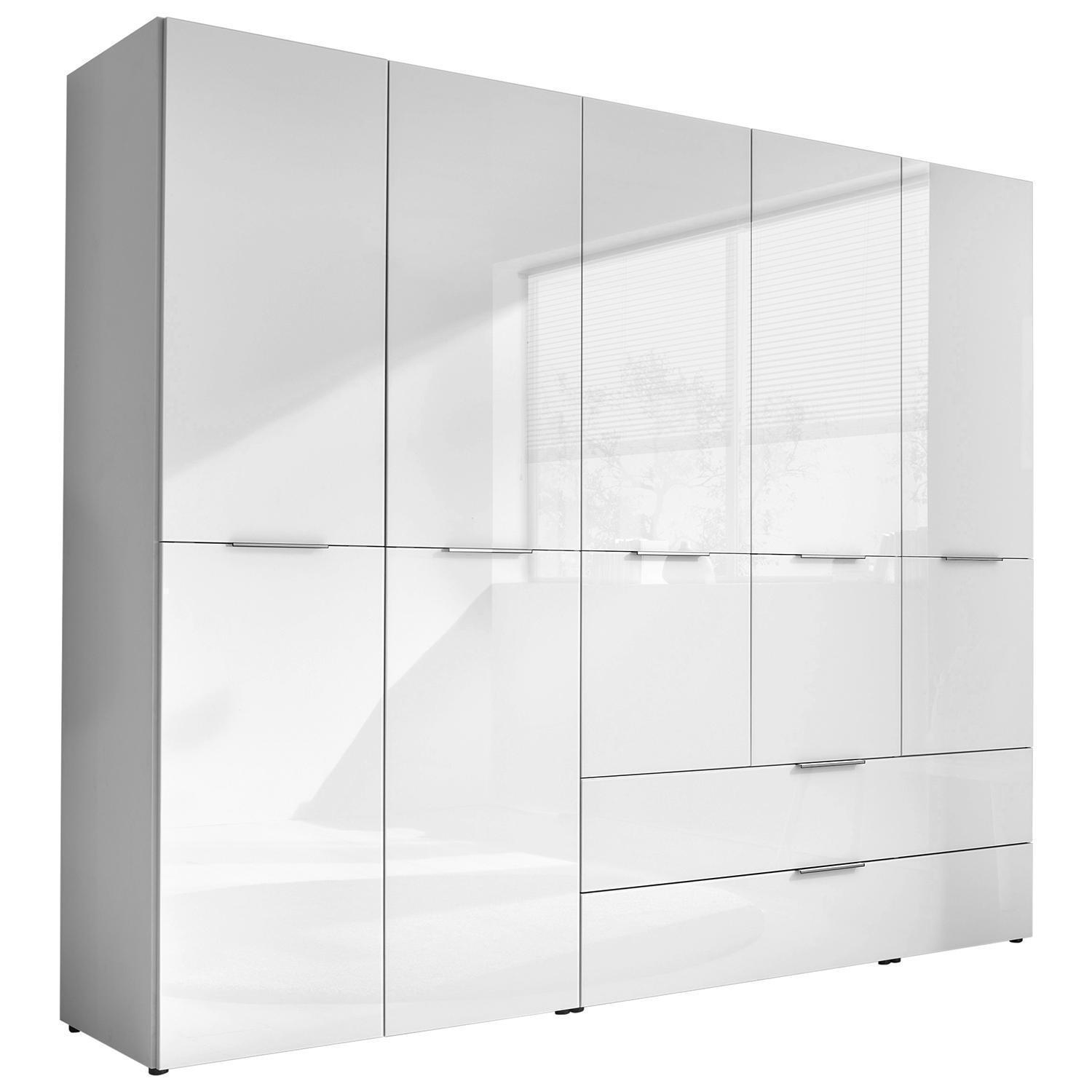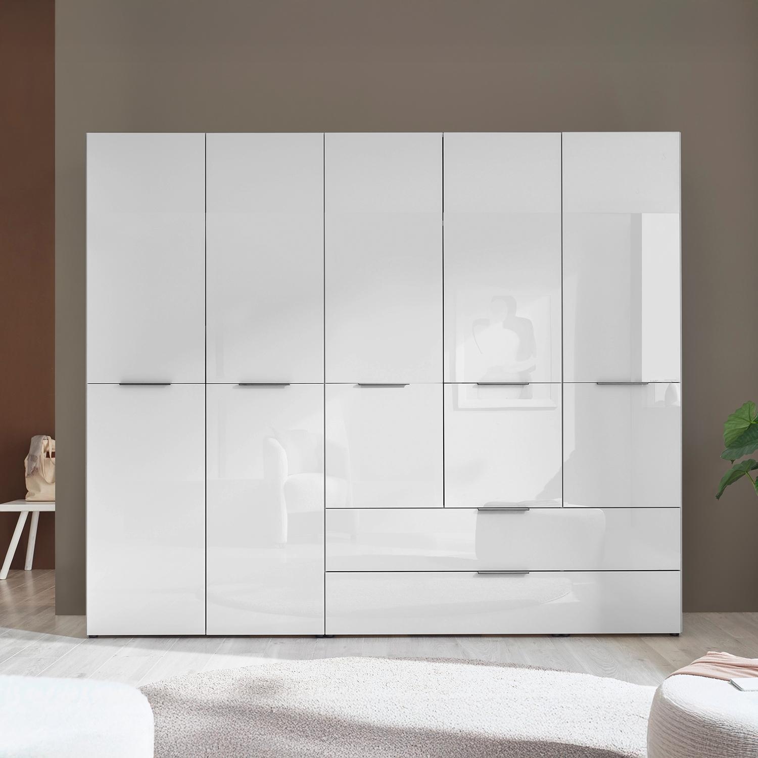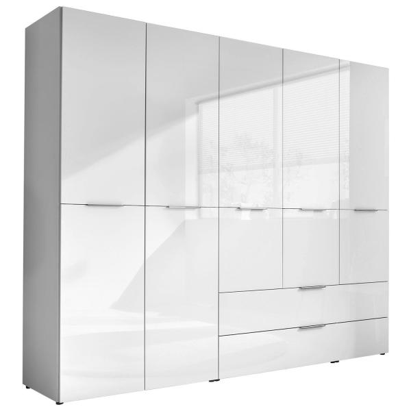 250 x 212 cm - 5 Türen - 2 Schubladen - Weiß matt - Weißglas