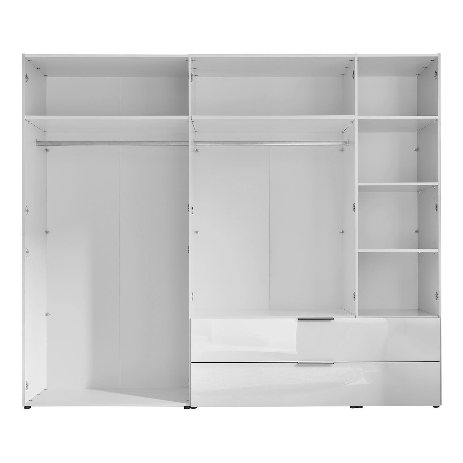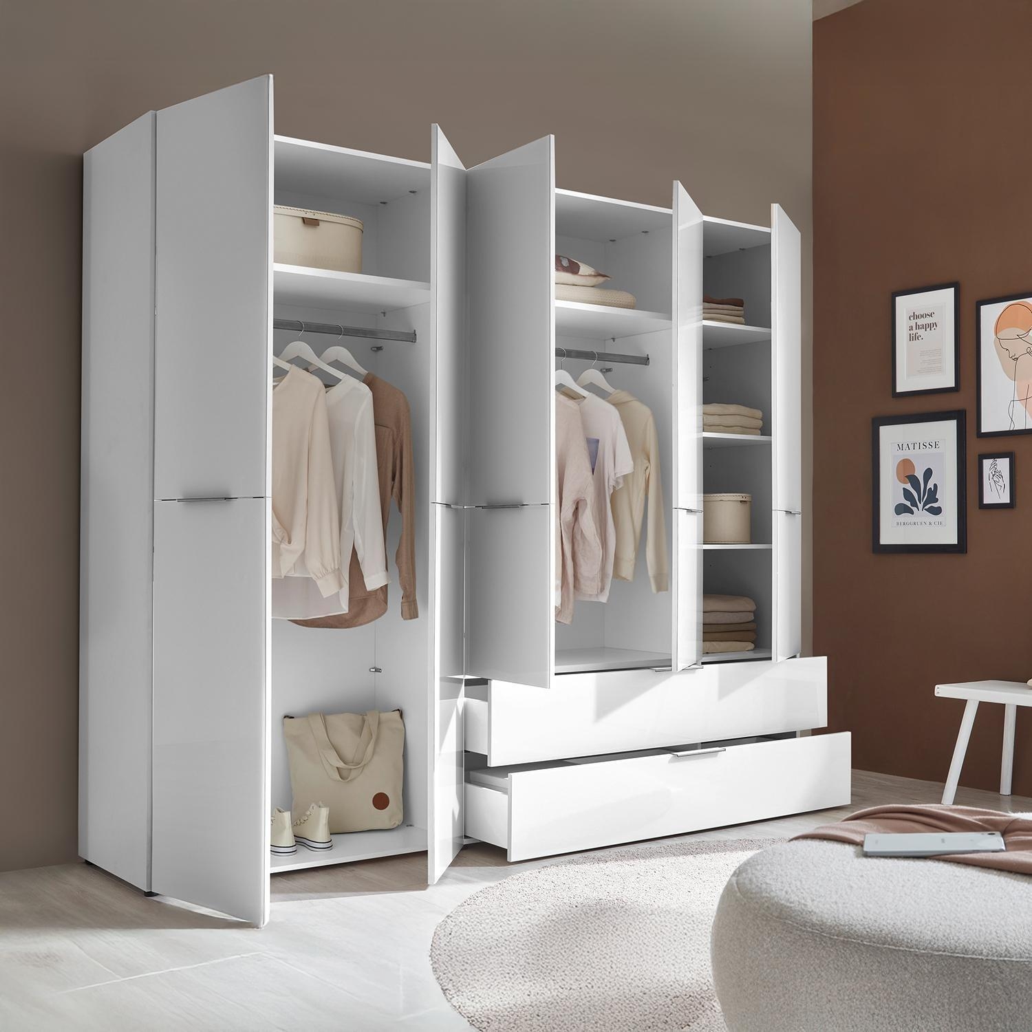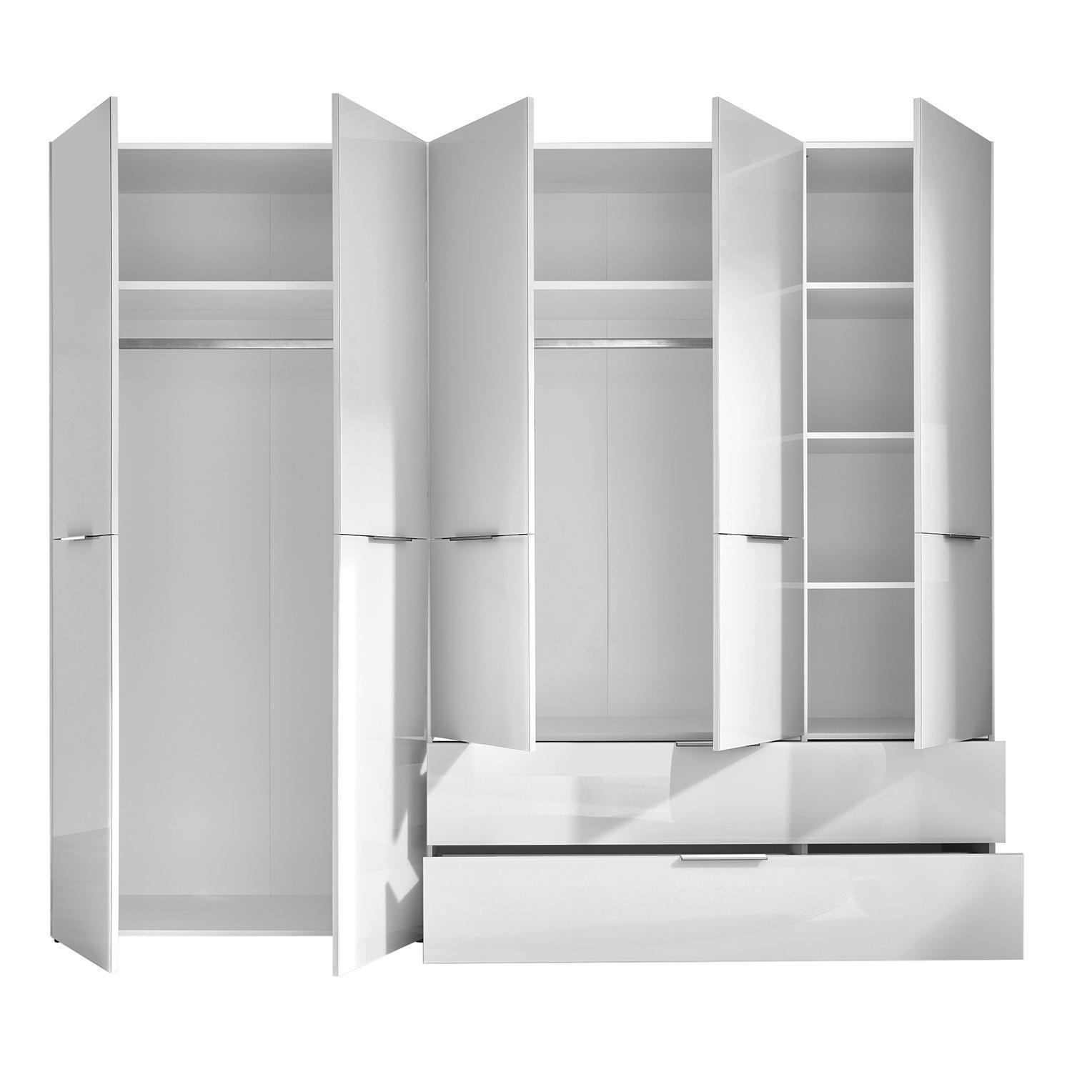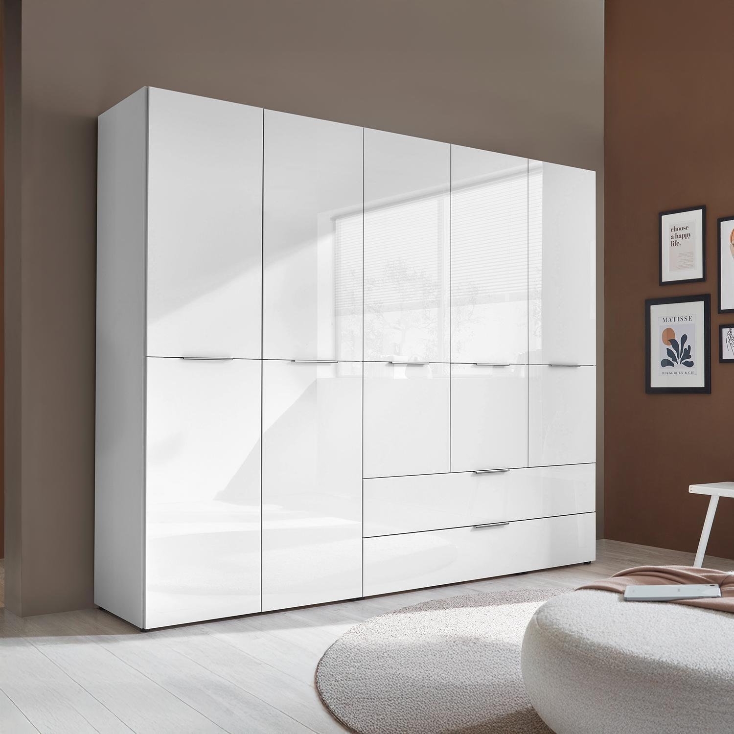 250 x 212 cm - 5 Türen - 2 Schubladen - Weiß matt - Weißglas