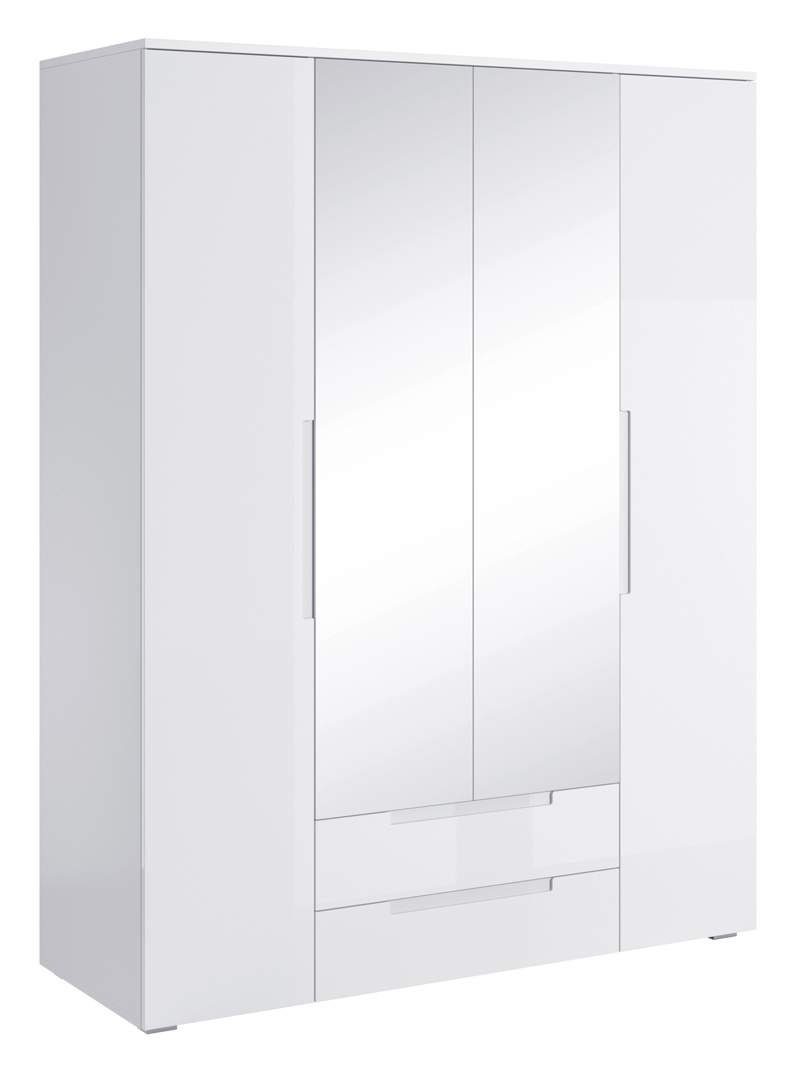 | Lieferumfang: | 1 Kleiderschrank mit 2 Spiegeltüren, 2 Türen, 2 Schubladen, 1 Kleiderstange, 1 Ablagefläche und 9 Einlegeböden |