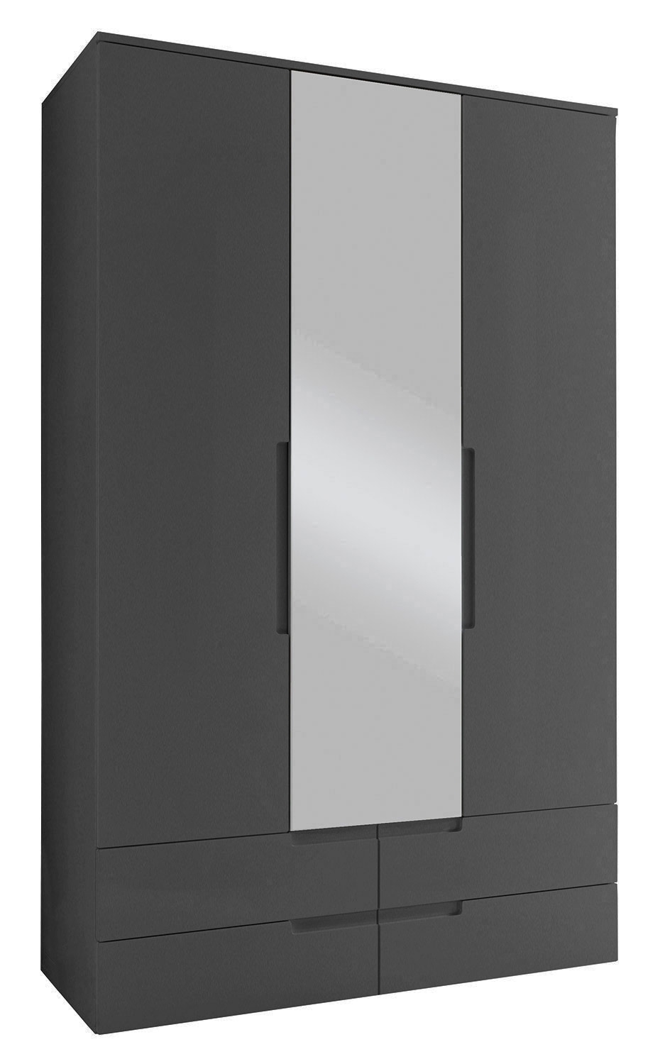 | Lieferumfang: | 1 schmaler Kleiderschrank mit 2 Holztüren, 1 Spiegeltüre und 4 Schubkästen |