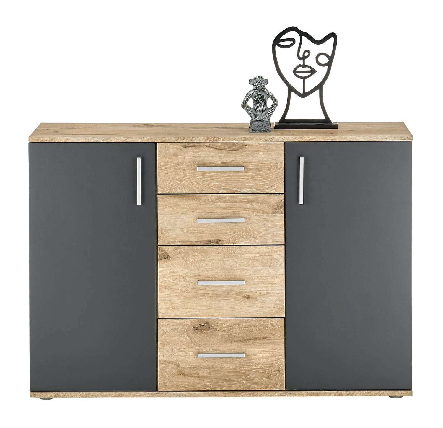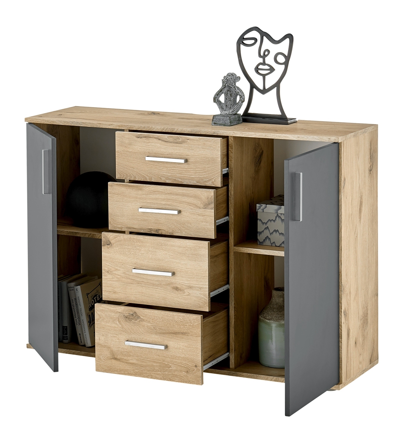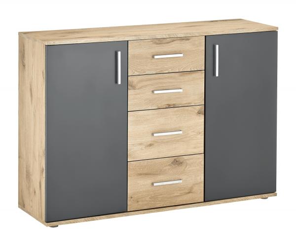 120 x 84 cm - 2 Türen - 4 Schubladen - Grau matt - Viking Eiche Dekor