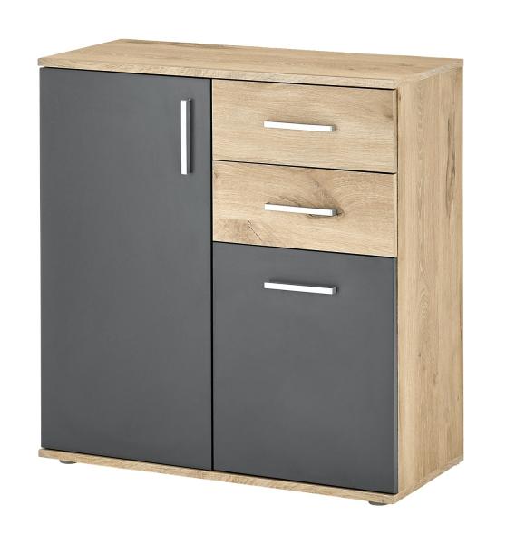 80 x 84 cm - 2 Türen - 2 Schubladen - Grau matt - Viking Eiche Dekor