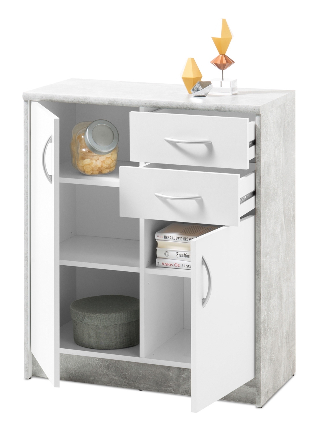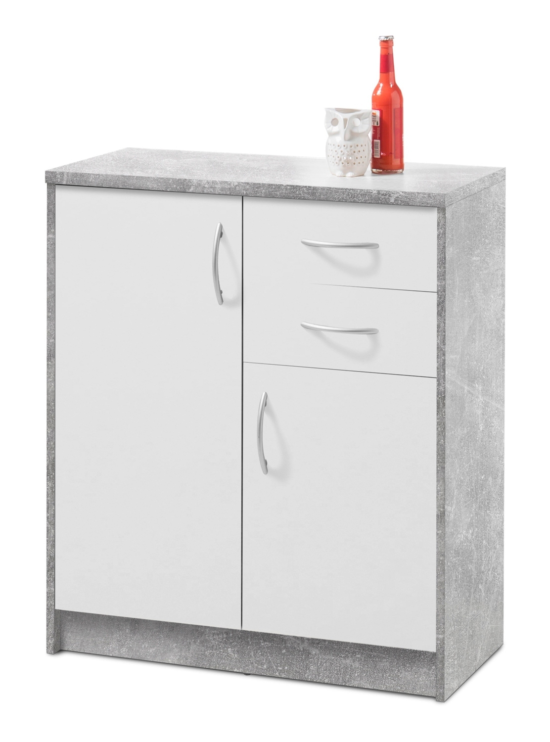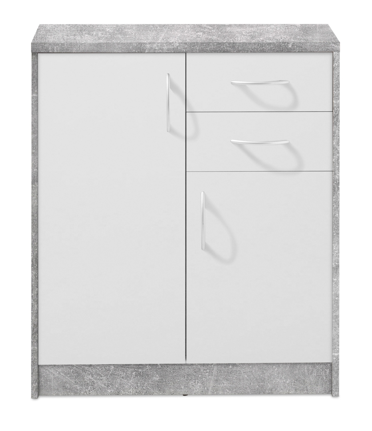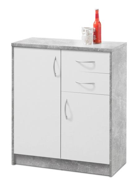 Betondekor - Weiß matt - 74 x 86 cm - 2 Türen - 2 Schubladen - 3 Einlegeböden