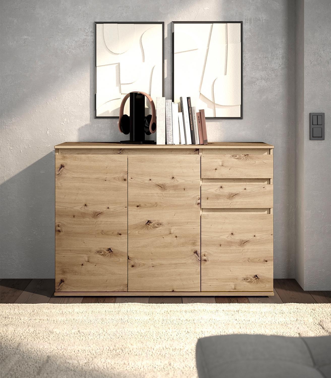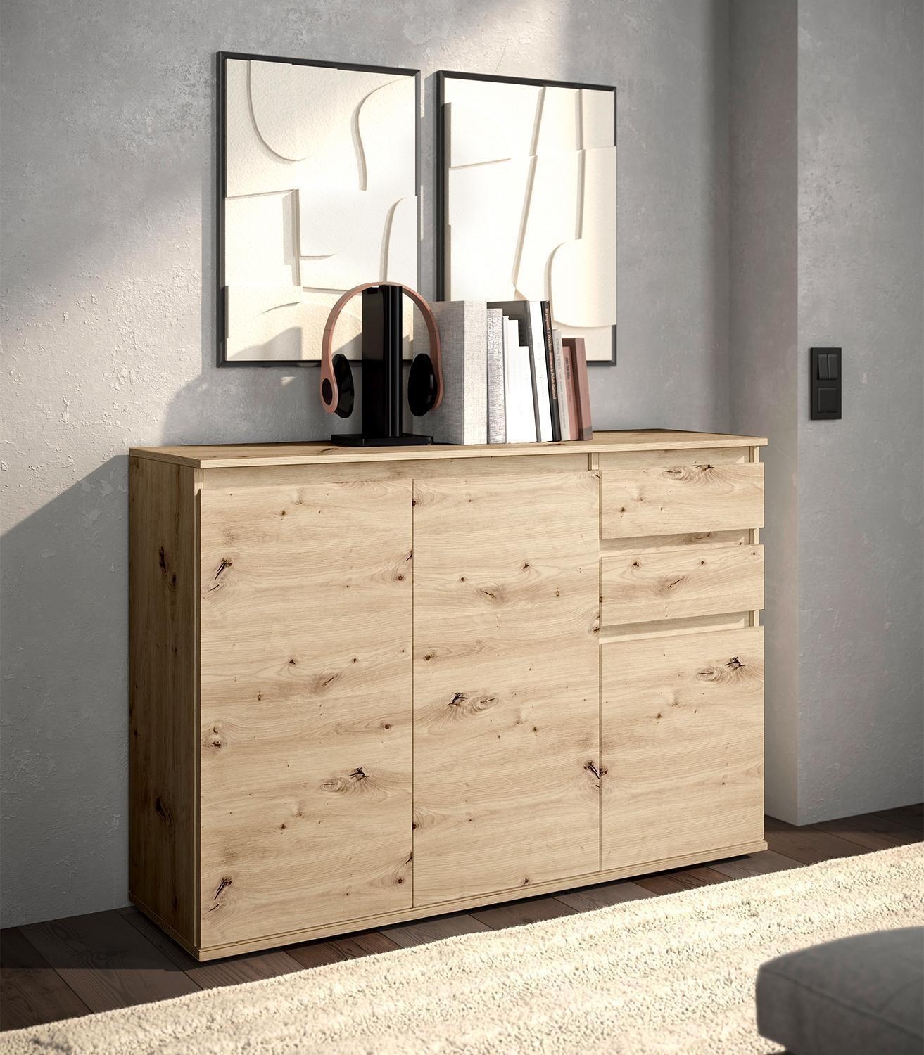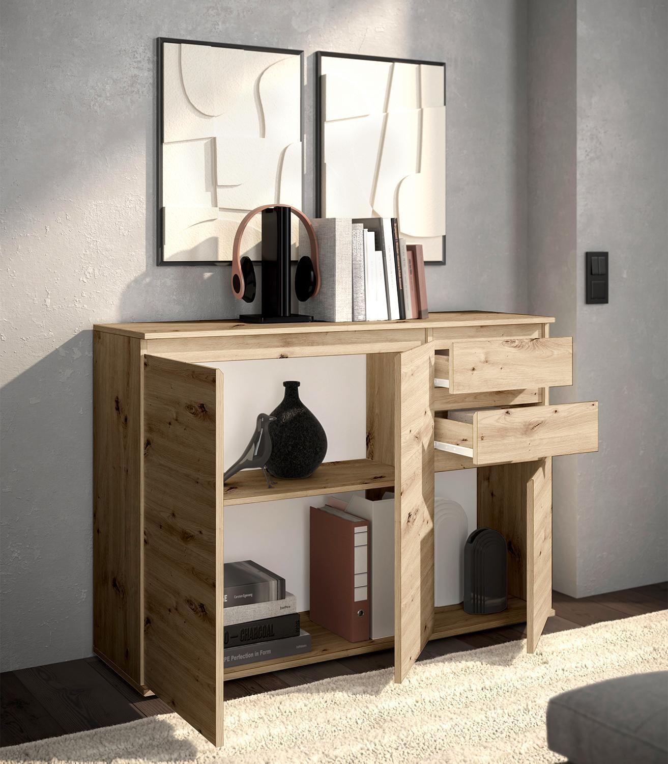 119 x 84 cm - 3 Türen - 2 Schubladen - Artisan Eiche Dekor