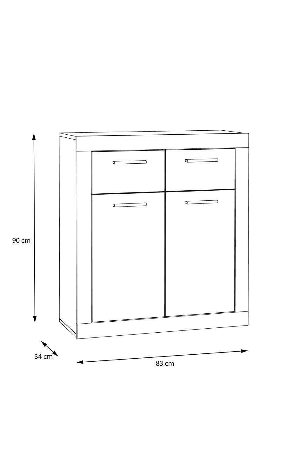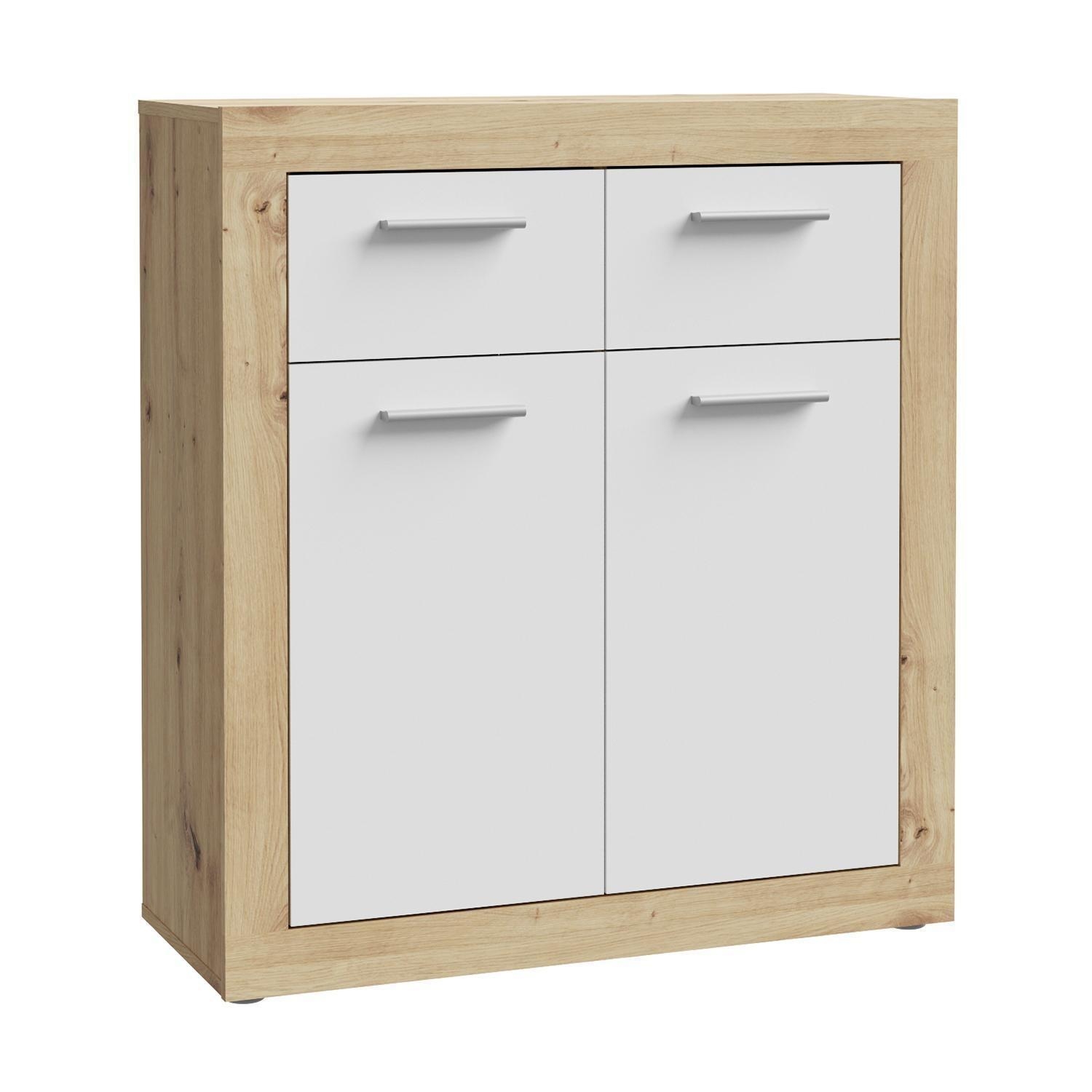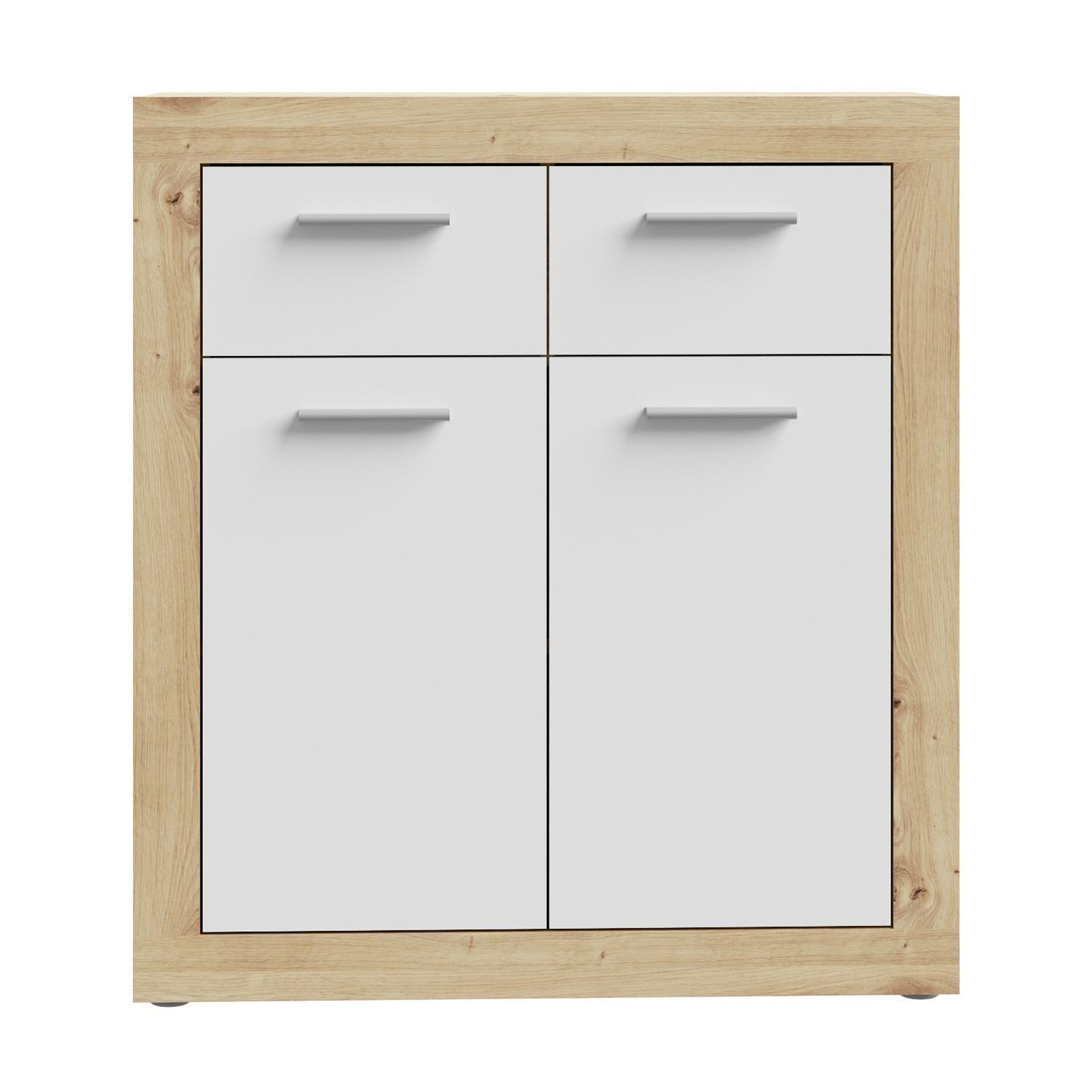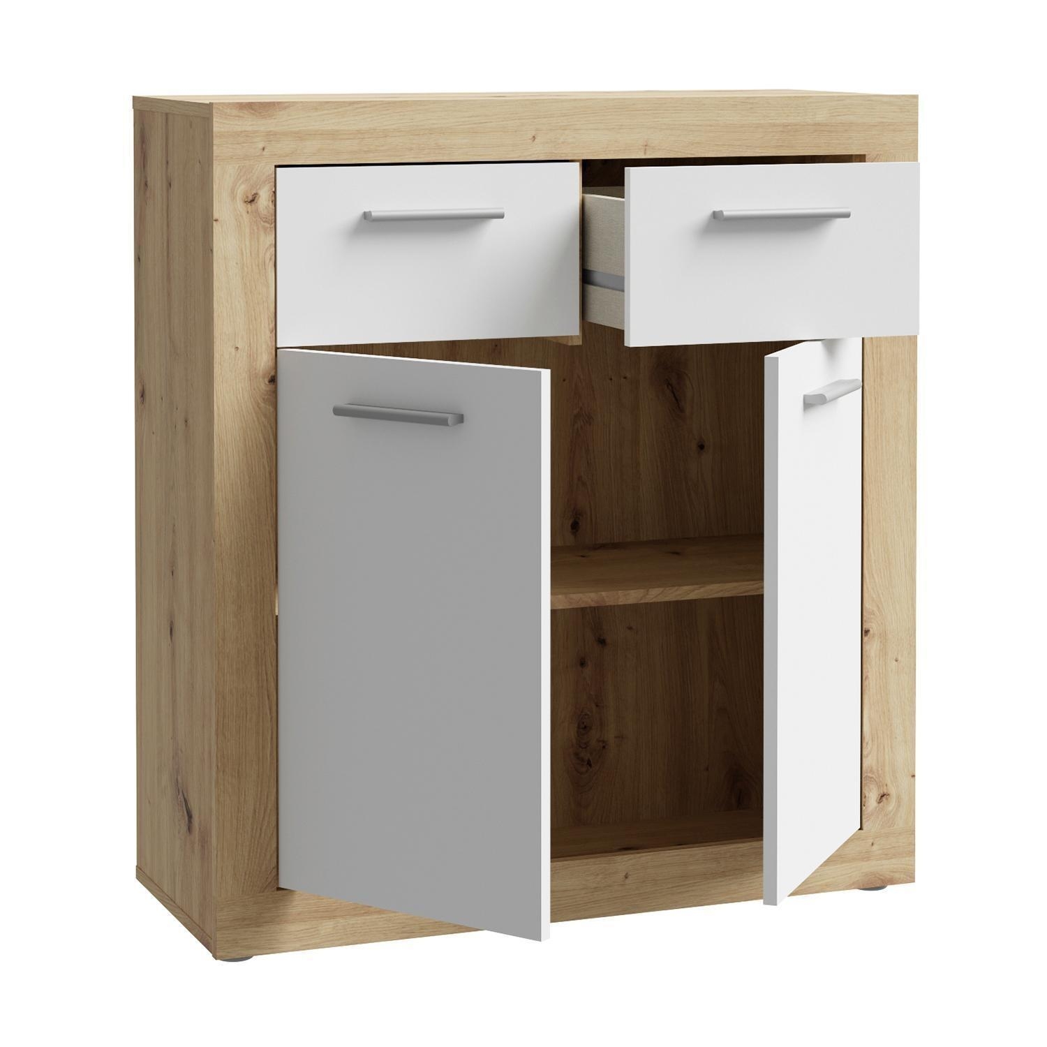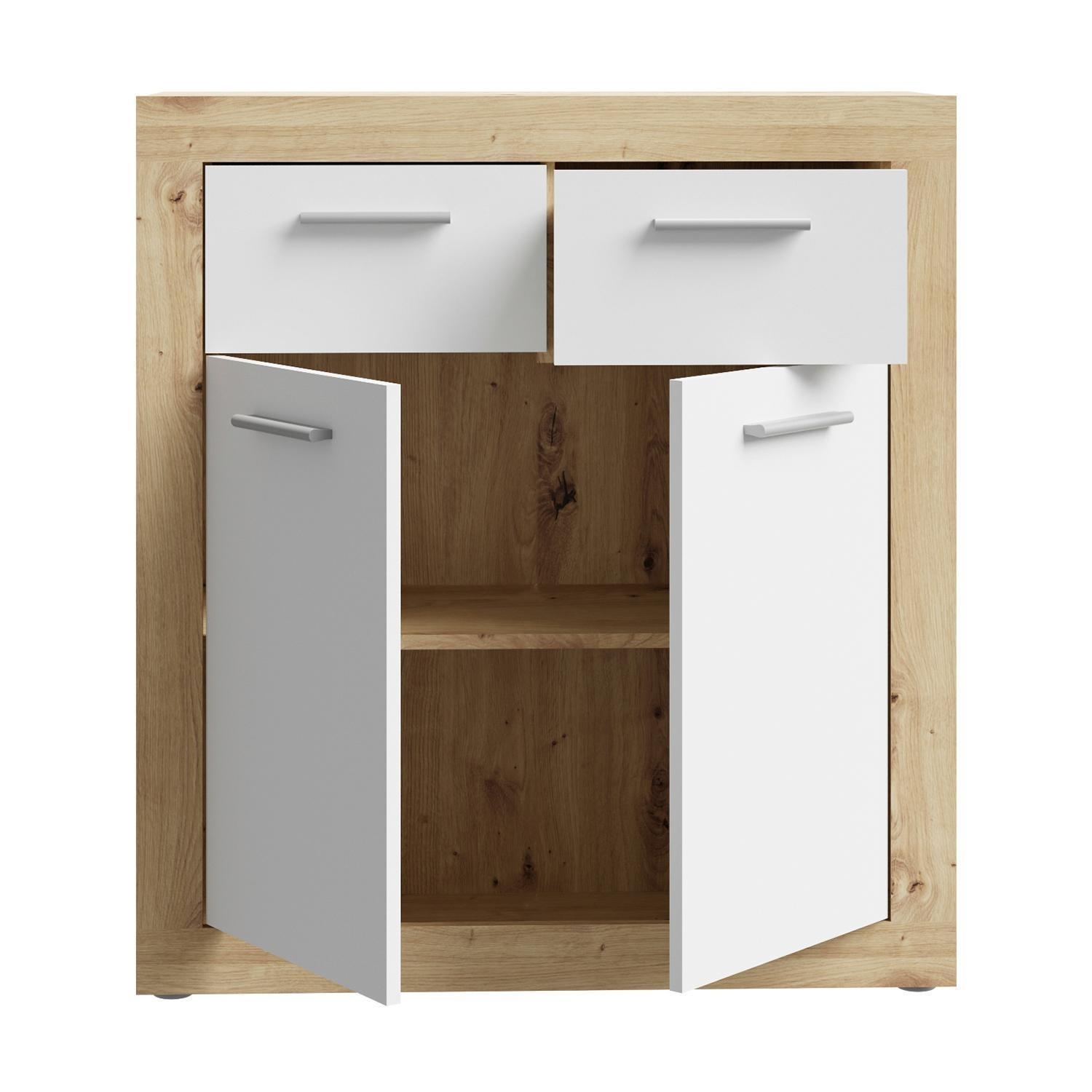 84 x 92 cm - 2 Türen - 2 Schubladen - Artisan Eiche Dekor - Weiß matt