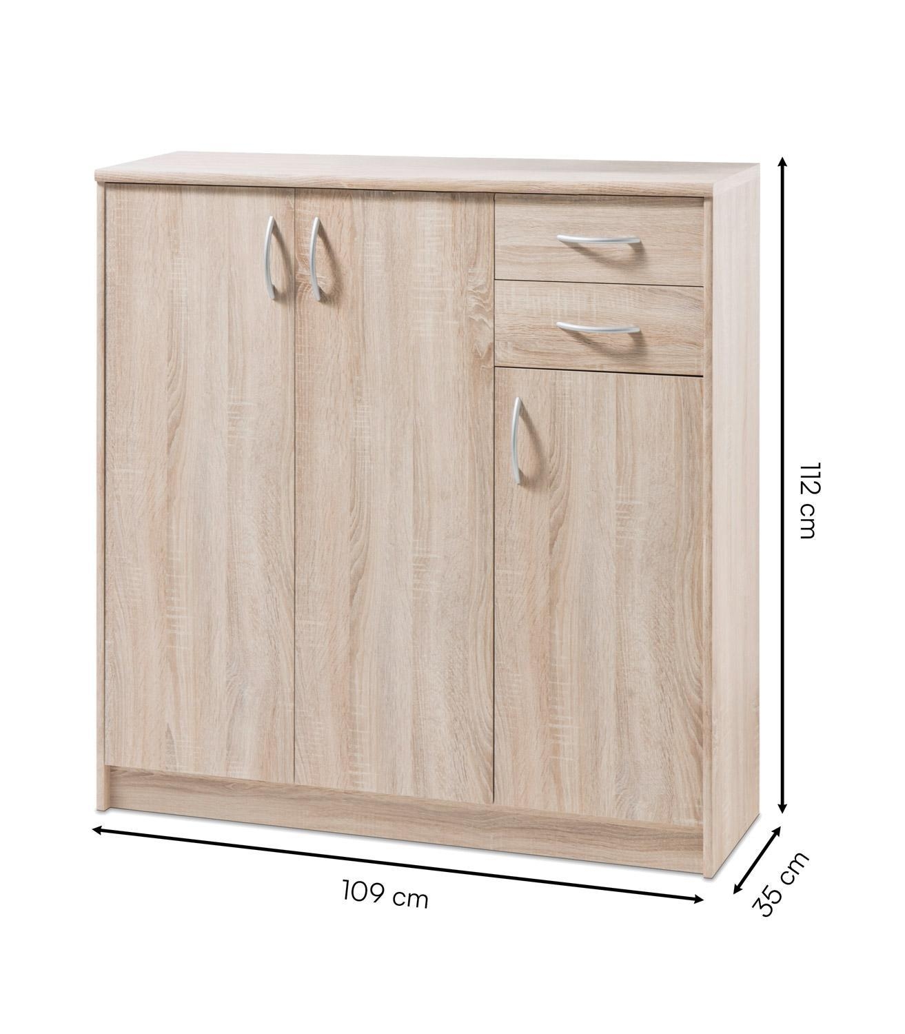 Eiche Sonoma Dekor - 109 x 112 cm - 3 Türen - 2 Schubladen - 5 Einlegeböden