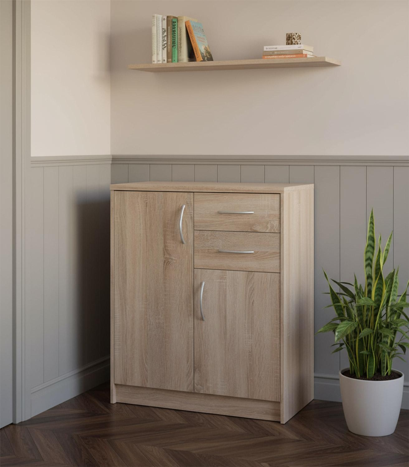 Eiche Sonoma Dekor - 74 x 86 cm - 2 Türen - 2 Schubladen - 3 Einlegeböden