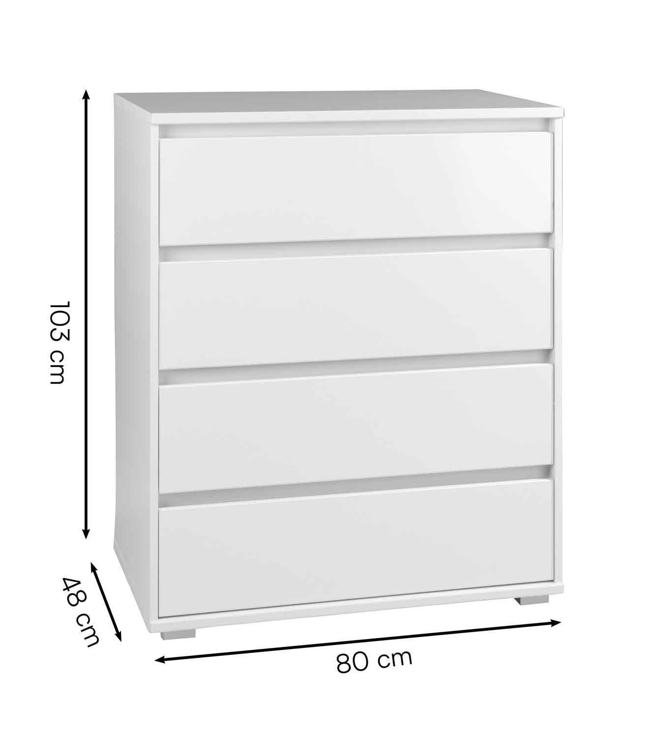 | Lieferumfang: | 1 Kommode mit 4 Schubladen |