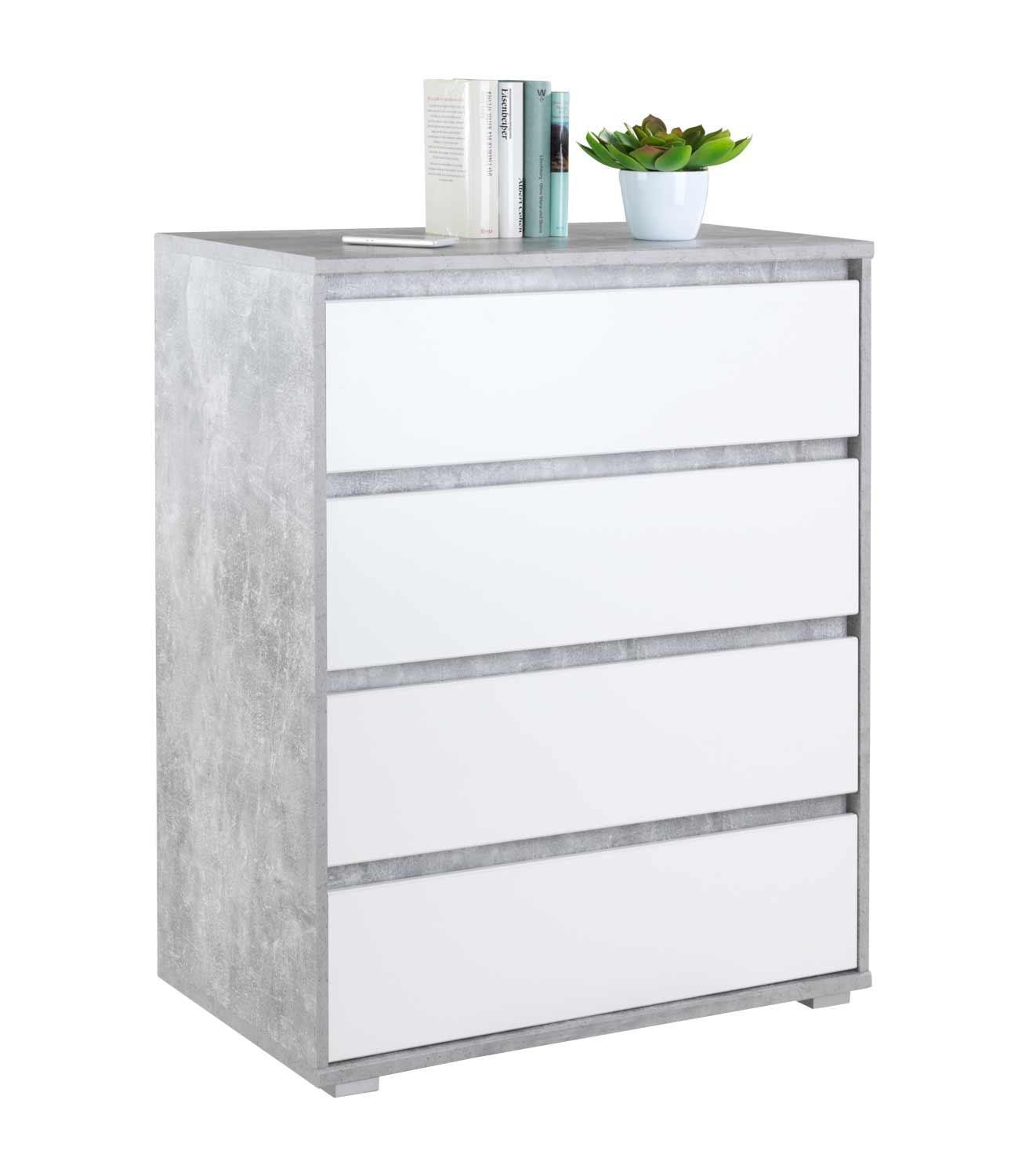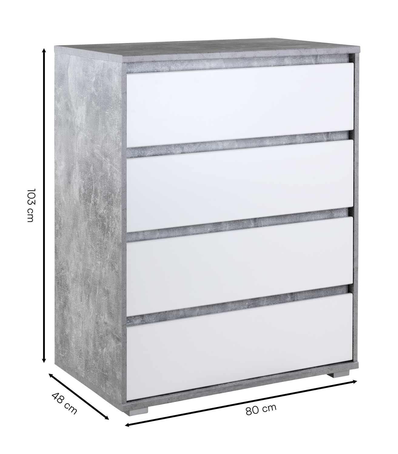 Betondekor - Weiß matt - B 80 cm - 4 Schubladen