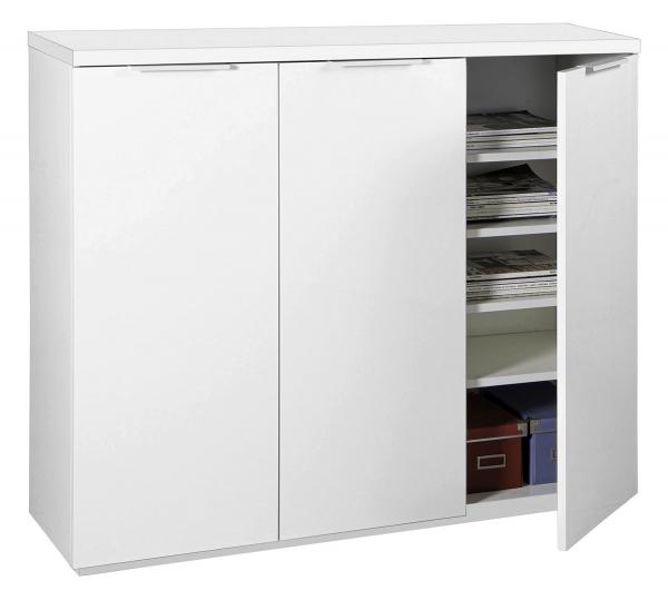 | Lieferumfang: | 1 Kommode mit 3 Türen und 8 höhenverstellbaren Einlegeböden |