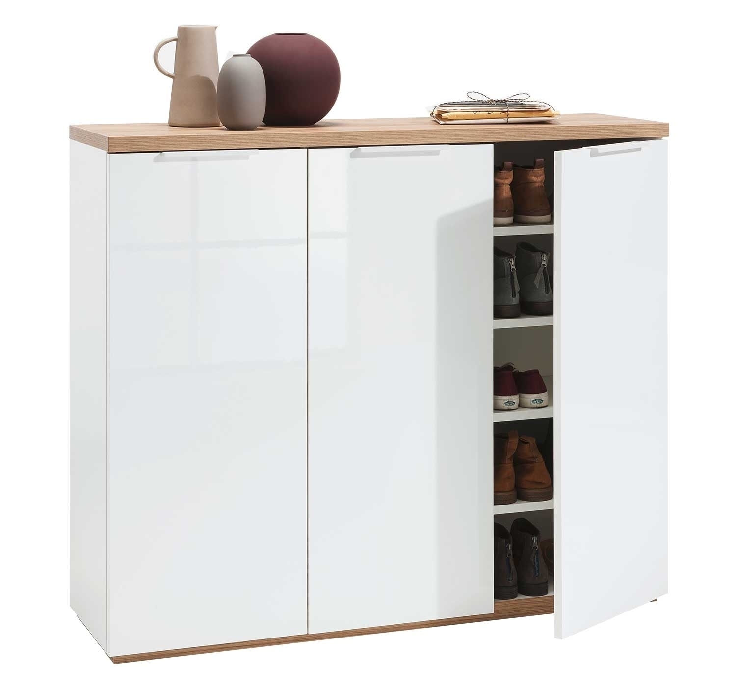 Riviera Eiche Dekor - Weiß Hochglanz - mit 3 Türen