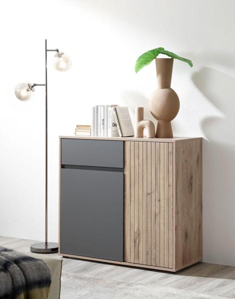 94 x 85 cm - 2 Türen - 1 Schublade - Viking Eiche Dekor - Grau matt