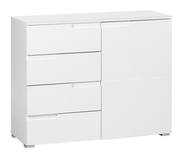 Weiß Hochglanz - B 100 cm - 1 Tür - 4 Schubladen