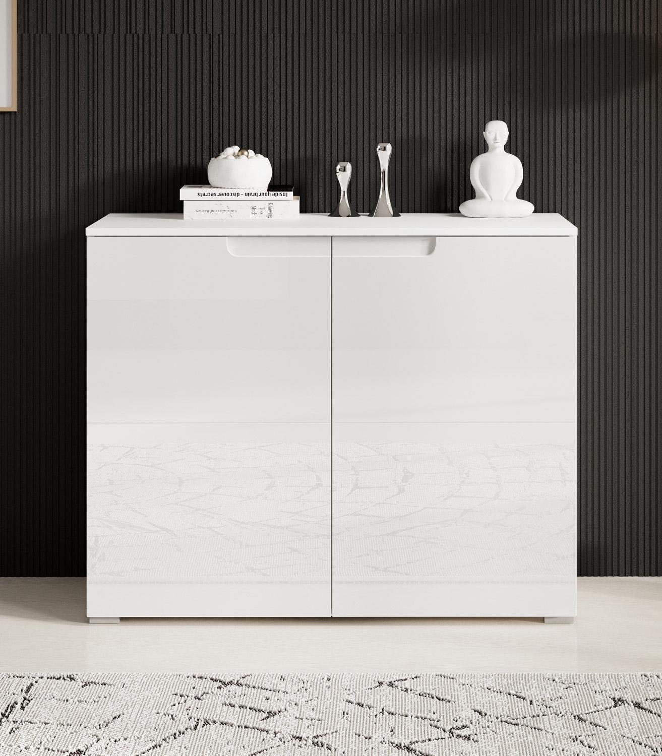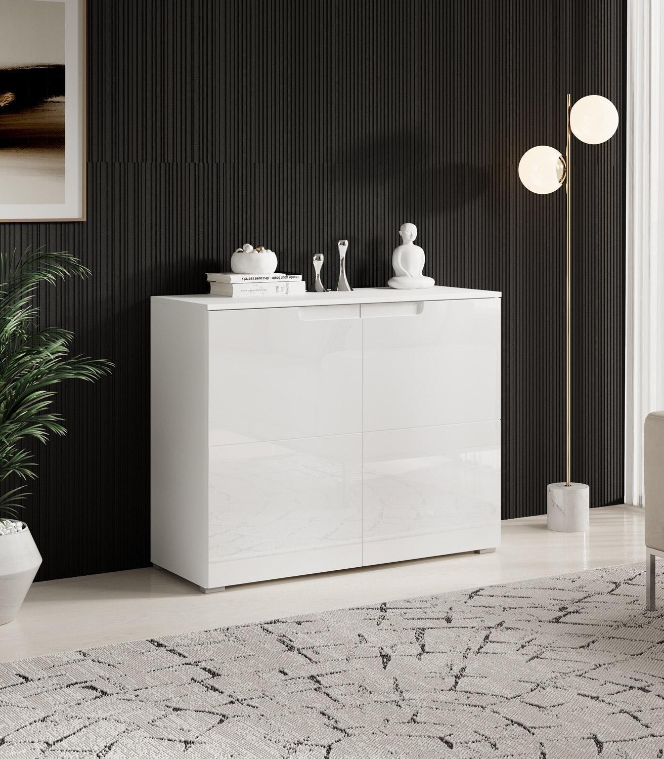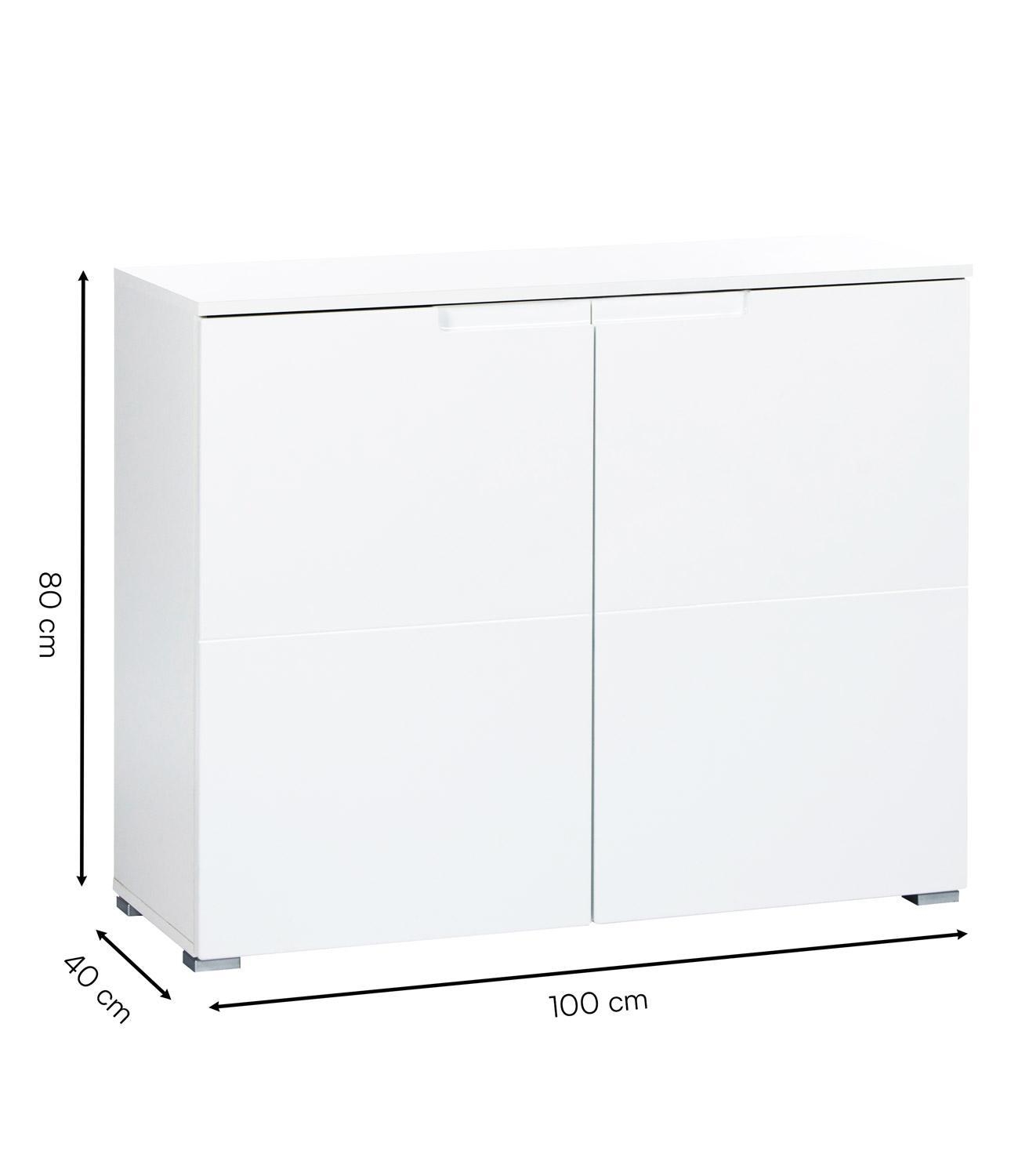 Weiß matt - Weiß Hochglanz - B 100 cm - 2 Türen