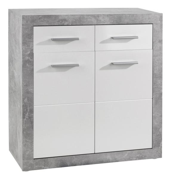 Betondekor - Weiß Hochglanz - B 82 cm - 2 Türen - 2 Schubladen