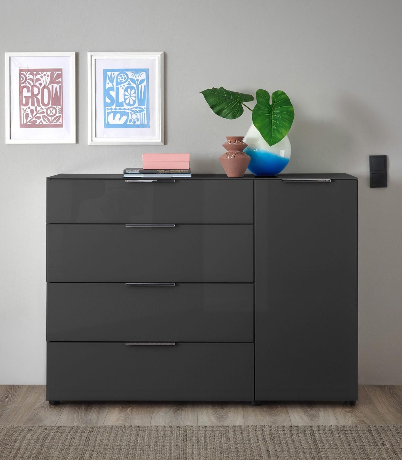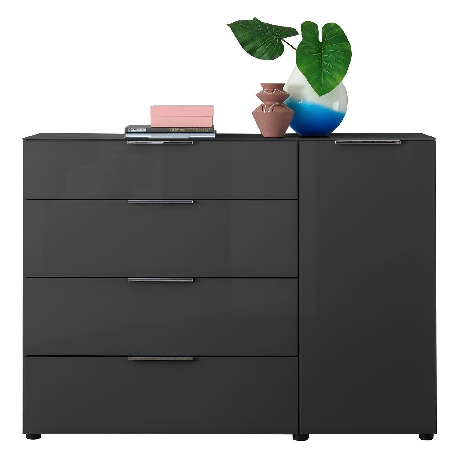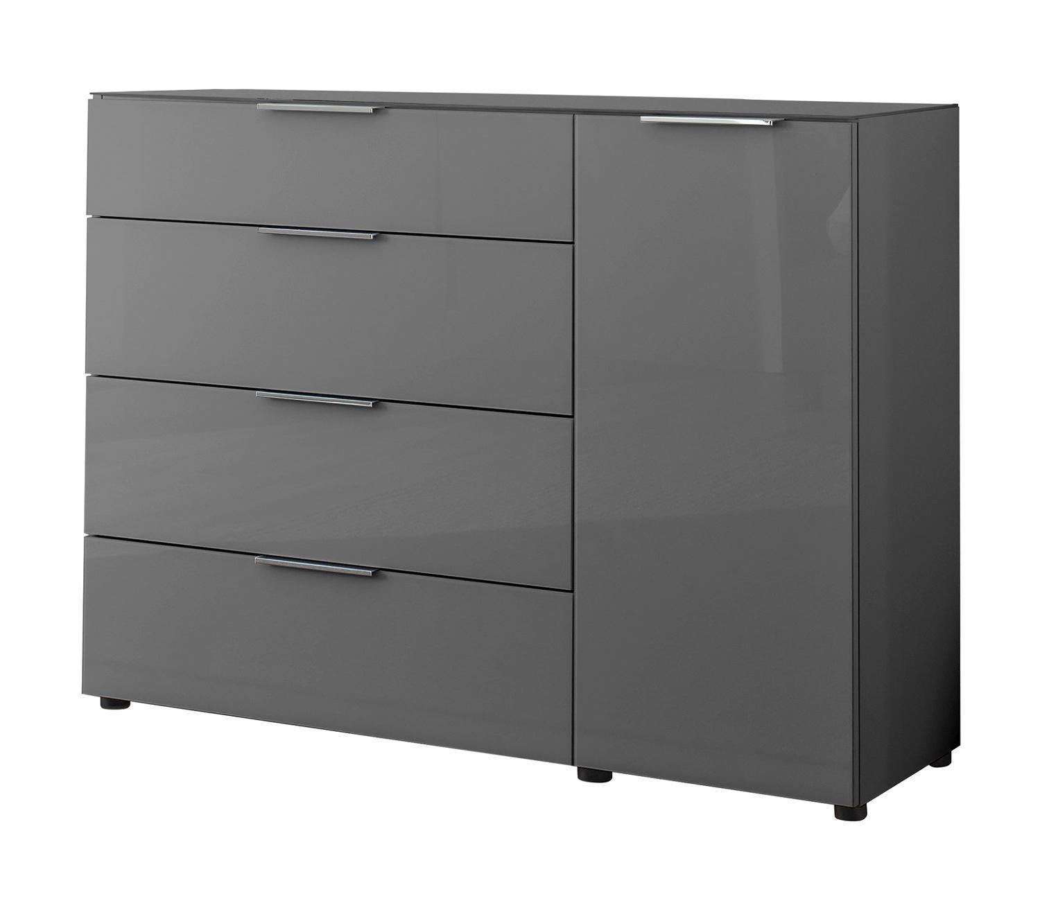 135 x 99 cm - 1 Tür - 4 Schubladen - Anthrazitglas - Anthrazit matt